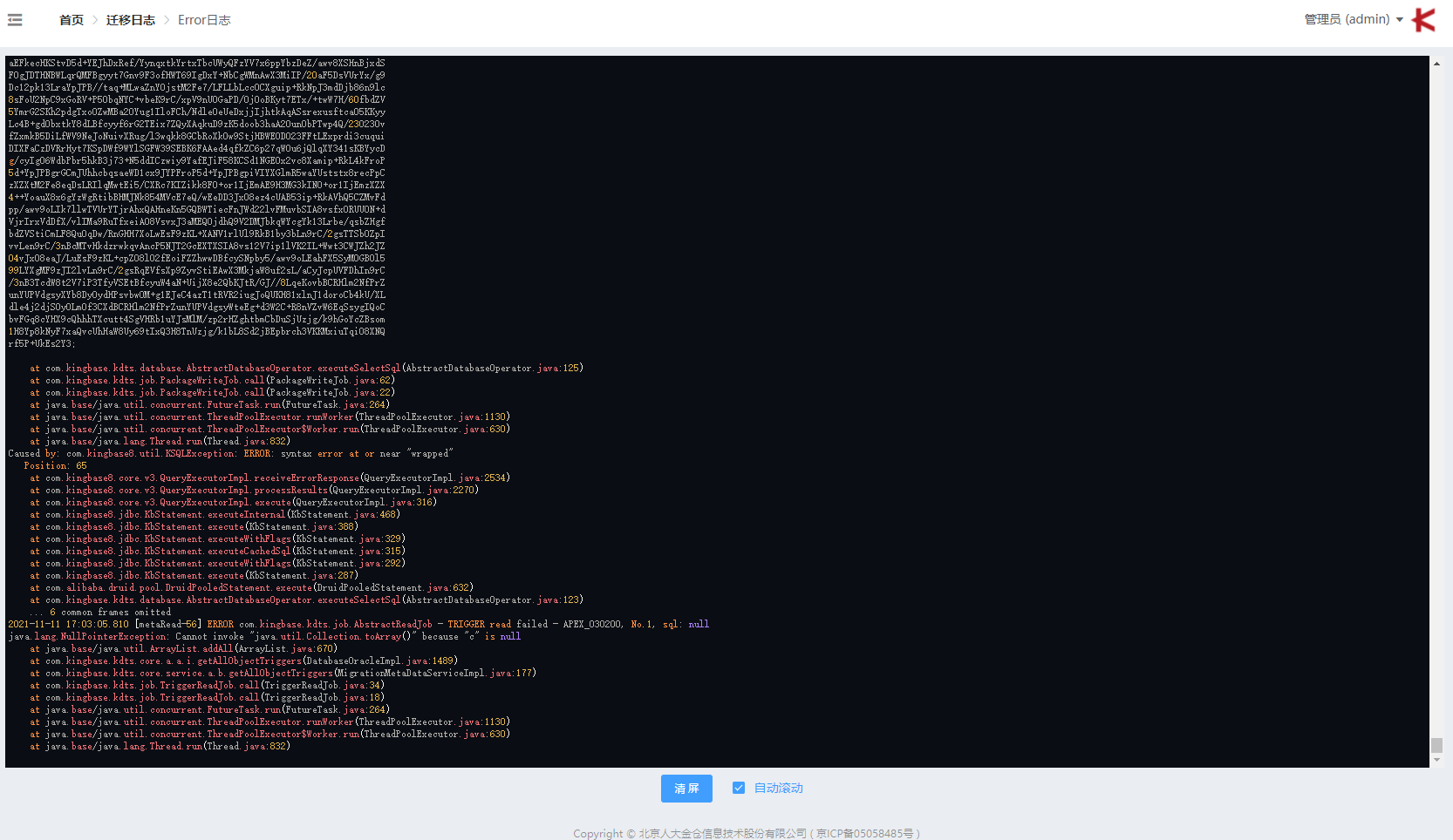 “Error 日志” 仅显示 error 级别的日志。在迁移任务失败时有助于帮您找到错误原因。如需自动滚动日志可以点击 “自动滚动” 复选框。