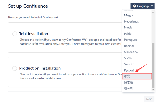1、访问地址:IP+端口,看到confluence初始化和配置页面