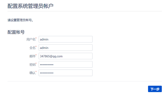 5、在配置系统管理员账户界面,配置账号信息,点击下一步