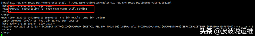 路径为:/u01/app/oracle/diag/tnslsnr/ZL-FSL-SRM-TOOLS-DB/listener/alert/log.xml