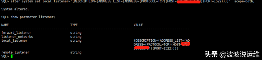 alter system set local_listener='(DESCRIPTION=(ADDRESS_LIST=(ADDRESS=(PROTOCOL=TCP)(HOST=xx.xx.xx)(PORT=1522))))' scope=both;