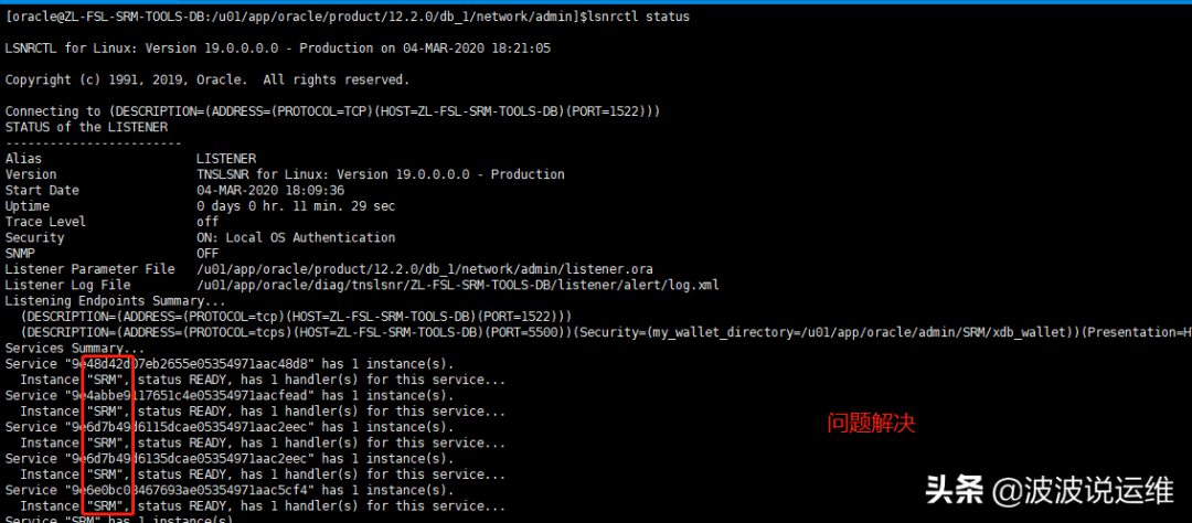 <txt>04-MAR-2020 17:48:53 * (CONNECT_DATA=(CID=(PROGRAM=)(HOST=ZL-FSL-SRM-TOOLS-DB)(USER=oracle))(COMMAND=status)(ARGUMENTS=64)(SERVICE=LISTENER)(VERSION=318767104)) * status * 0