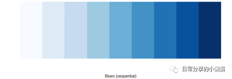 brewer.pal(9, "Blues") #查看该颜色下【十六进制颜色代码】
