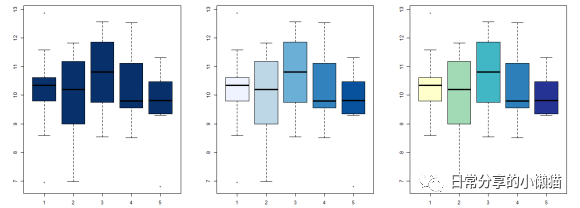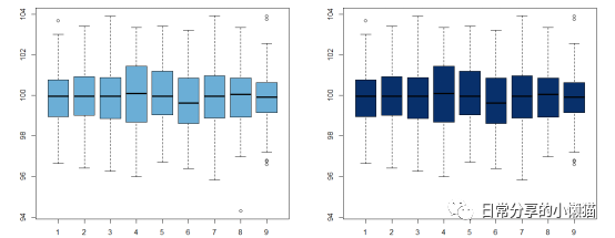 boxplot(rand.data,col = brewer.pal(9,"Blues"))