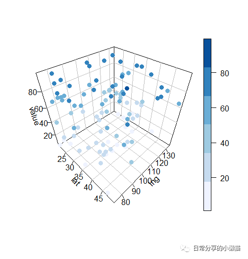 scatter3D(x = data$lat, y = data$lng, z = data$value, pch = 19, cex= 1.2, col = brewer.pal(6, "Blues"),