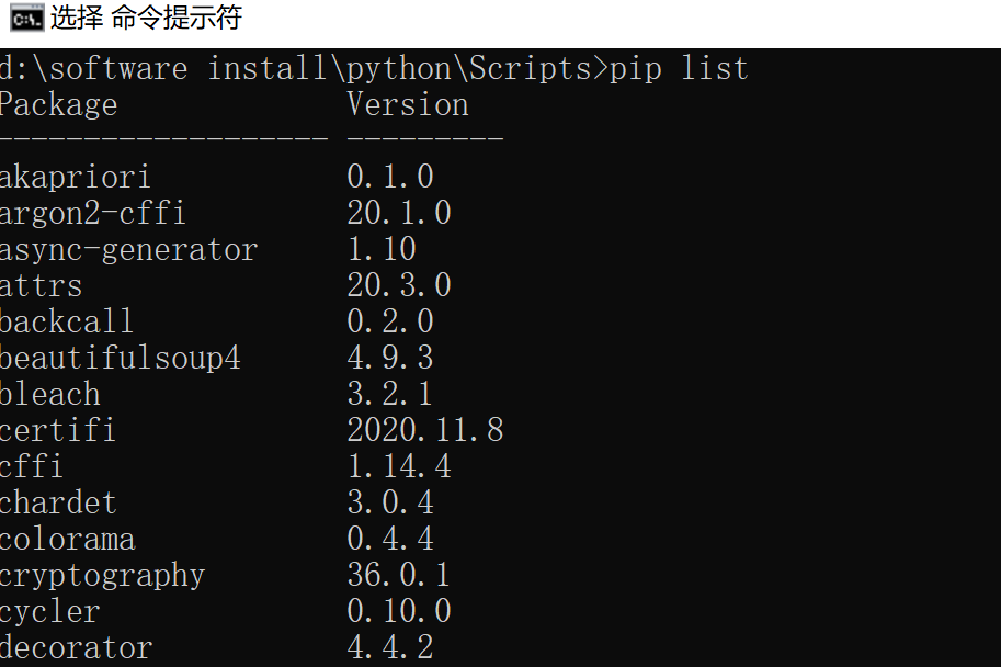 pip freeze> C:\Users\qihai\Desktop\install.txt#生成一个本机安装的第三方库及版本列表的txt文件,文件名为install,位置为我的计算机桌面(C:\Users\qihai\Desktop)