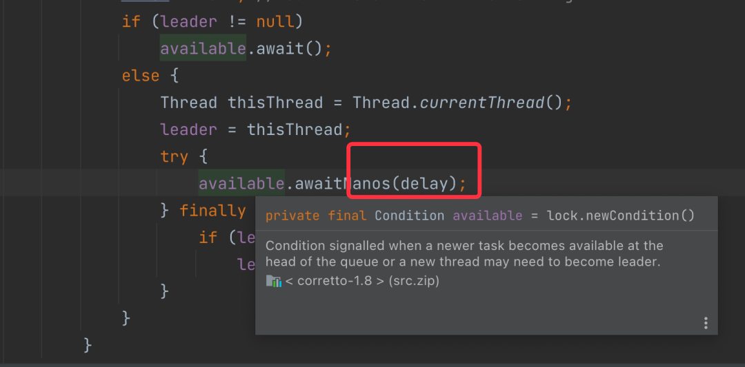 的take方法里,使用了ConditionObject的awaitNanos方法。