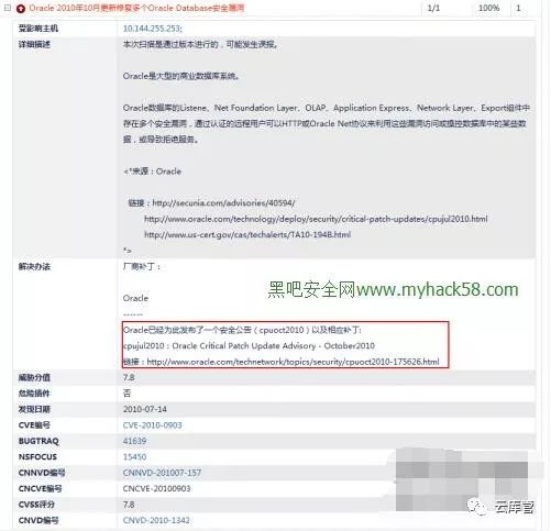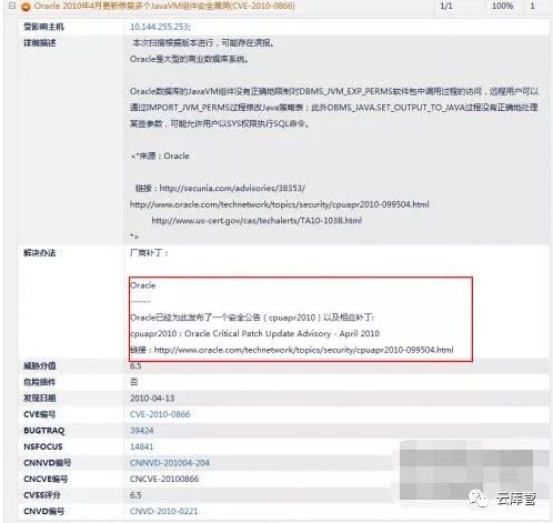 只不过通过检查Oracle的软件补丁发布情况,和DB是否应有最新的Patch,而报出漏洞的信息,来吓唬客户,体现自身低微的价值。