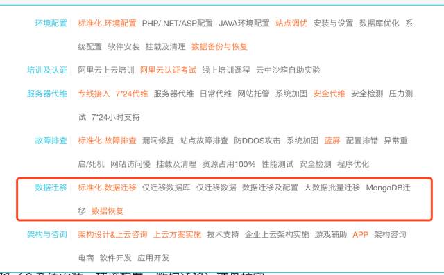 阿里云官方针对数据库,提供数据传输 (DTS) 和专业的数据库管理工具 (DMS) ,同时在官方的服务之外,还开拓了阿里云云市场,云市场内有数百种不同的数据服务和近百家数据服务服务商,能够让你在需要帮助时,第一时间获取到帮助。
