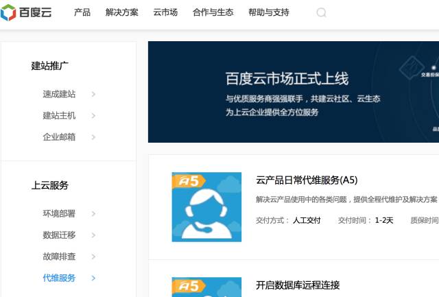 百度云的生态是三家中做的最差的,只有两家服务商,提供了不到十种服务。其云市场实在是贫瘠不堪。用户在出现问题后,基本上只能依赖自己的维护人员,无法快速的获取到服务市场的帮助。