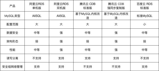 三家在功能上差距并不是很大,但是需要注意的是,阿里云和腾讯云都对 MySQL 进行了深度的内核开发,阿里云更是将其开发后的数据库开源,发布至 Github ,可见其对 AliSQL 的信心。百度云在 MySQL 二次开发的能力上还显得薄弱。