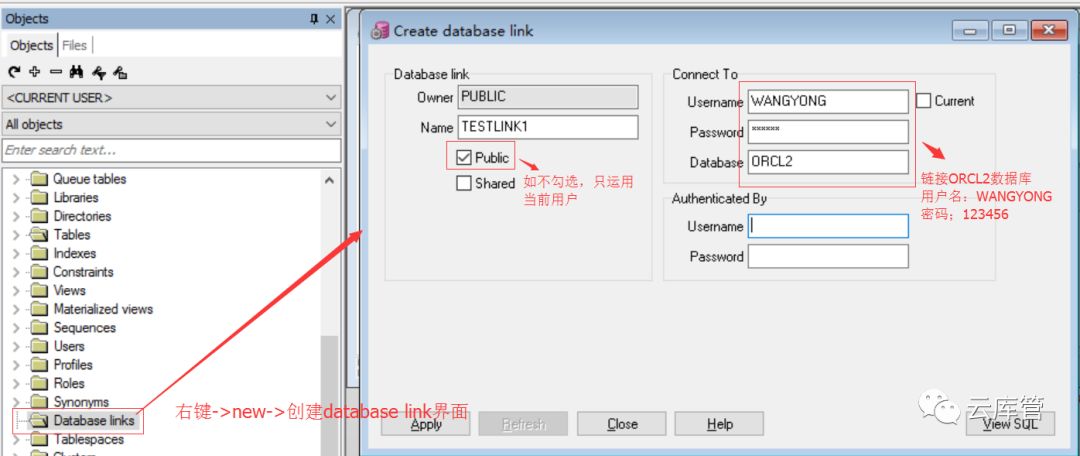 第二步;创建database link