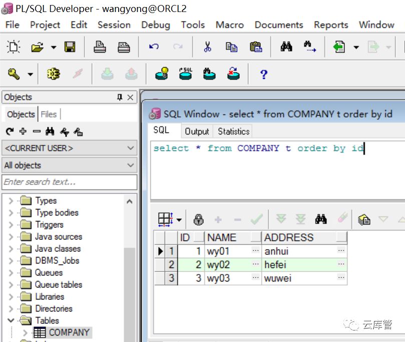 现在,我们通过database link 在orcl中访问这张属于orcl2库中WANGYONG的表COMPANY