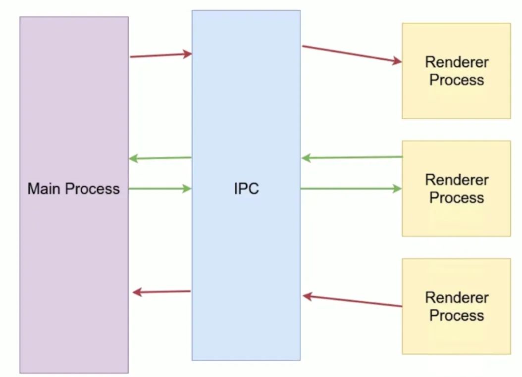 electron 使用 IPC (interprocess communication) 在进程之间进行通信,如下图所示: