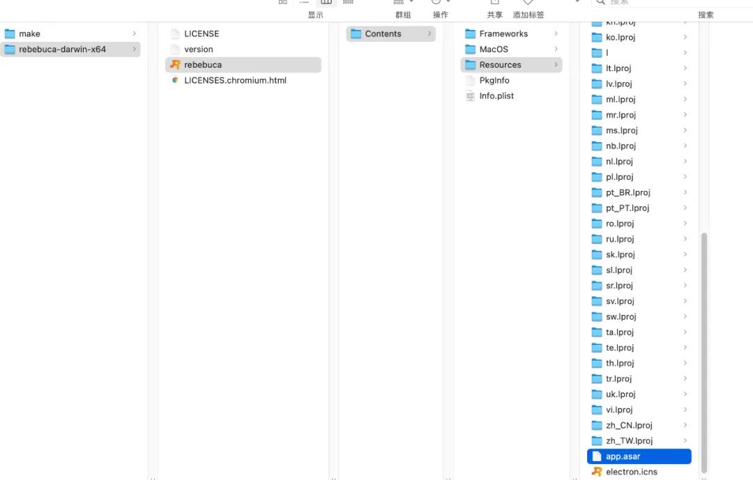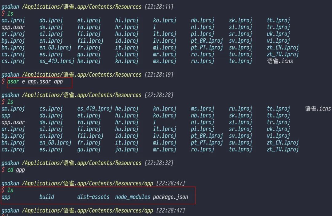 通过图中操作即可看到语雀应用的源码。上面提到的 asar 是什么呢?
