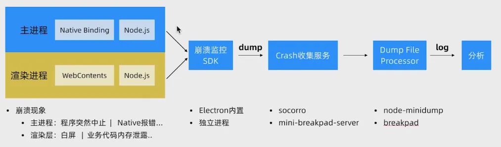 主进程、渲染进程通过 process.crash() 进行模拟崩溃