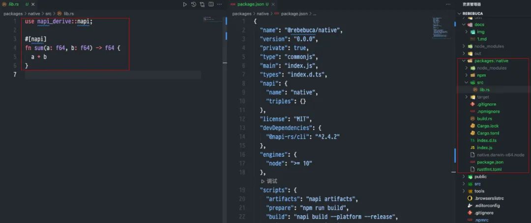 方案:使用 napi-rs 作为工具去编写,如下图所示: