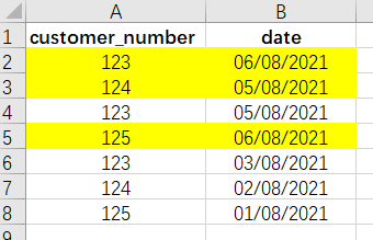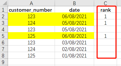 就是这么一行,就能对整个字段进行去重。类比到excel里,就相当于选中某列,再点选“删除重复值”选项。可惜的是,现实业务永远不会这么简单粗暴。函数distinct 甚至不能对两个字段同时进行去重,所以在稍微复杂一点的情境下,这个函数就显得捉襟见肘了。这里同样以excel作为参照,假设要找出最近一次登录的客户(图片标黄的部分):