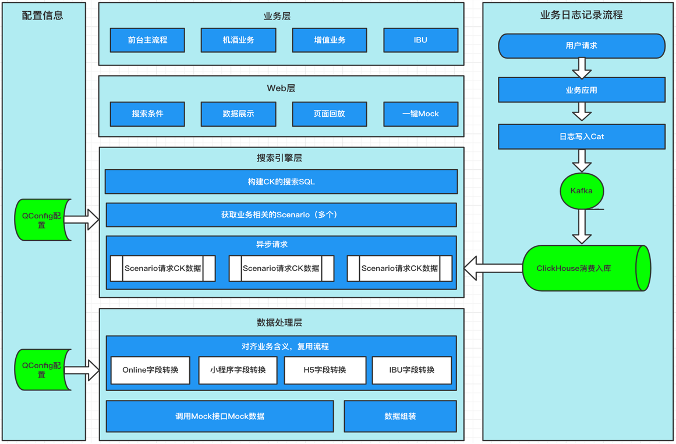 数据处理层:根据业务线将CK数据进行加工组装、处理一键Mock请求,并将数据传送至Web进行反馈