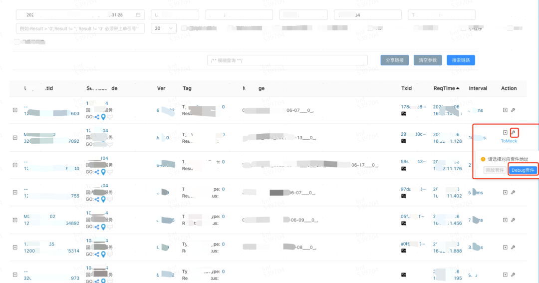 针对这个问题,Trace系统在链路聚合的基础上提供了一键Mock的功能,将此次服务所涉及的链路调用全部自动配置到接口中,过程无需人工干涉,将之前需要十分钟的工作降低至五秒内,极大地提高了工作效率。