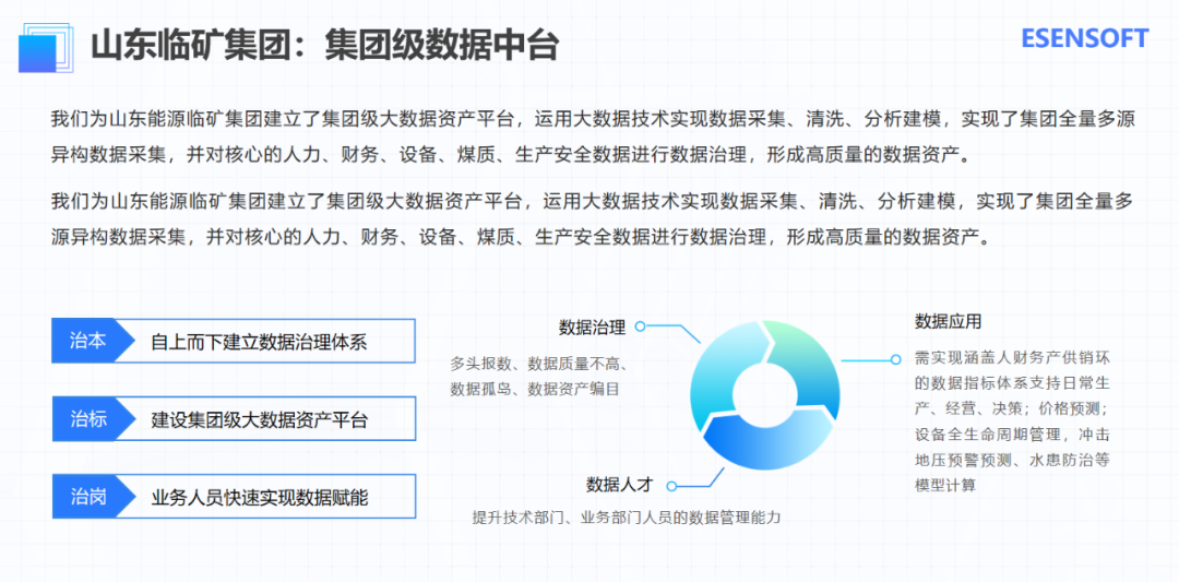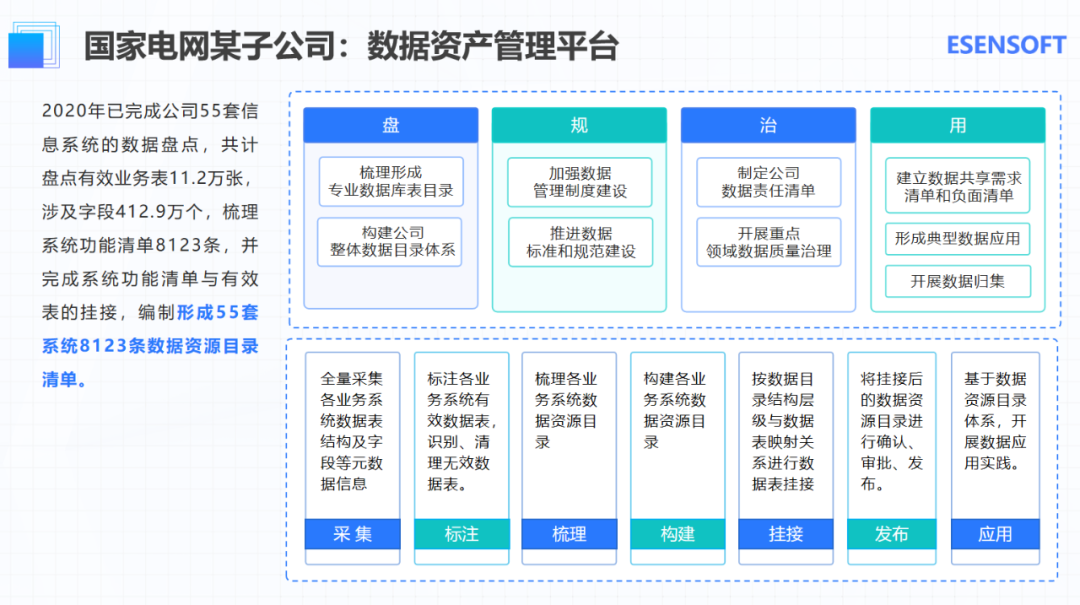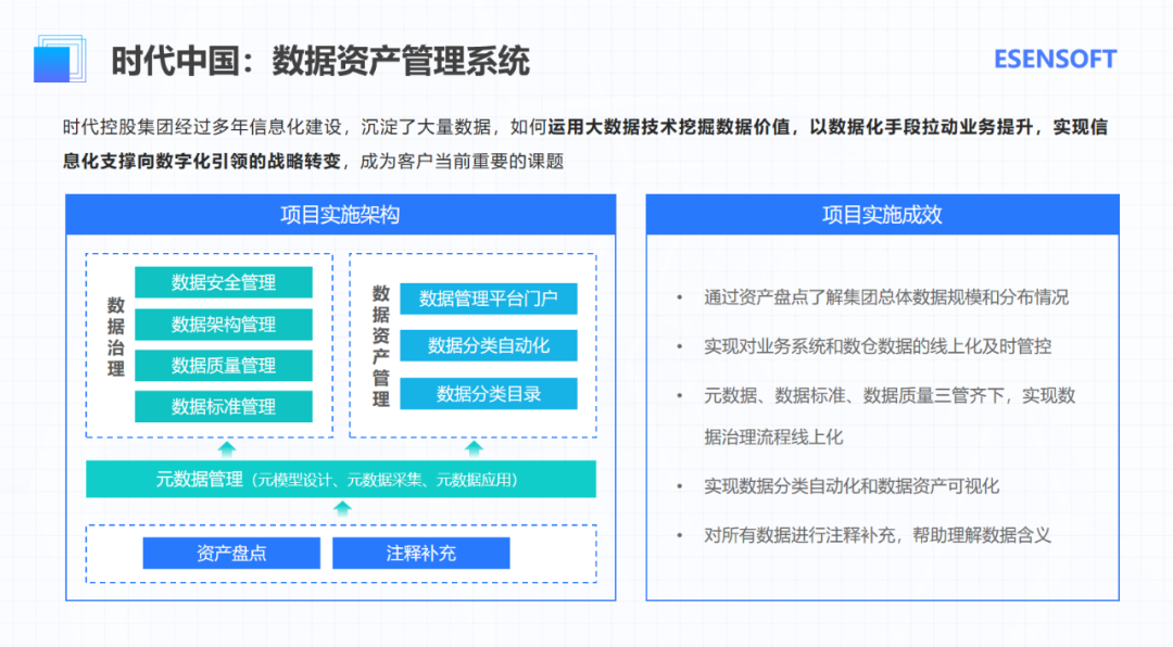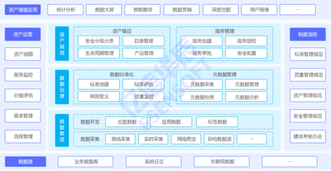 针对数据资产管理面临的问题和挑战,亿信华辰打造数据资产管理解决方案以提供数据资产增值为目标,遵循“全局意识、业务为本、数据为核、分步演进、局部执行”的原则,实行以管理架构和制度策略为保障,以数据资产四大管理职能为支撑,提供N多数据资产服务的“1+4+N”的管理模式,一站式帮助企业搭建数据资产管理平台。