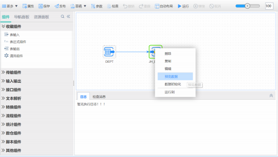 传输交换管理平台提供了可视化的数据交换作业定义功能,支持作业的试运行和断点调试等,丰富的组件支持,能完成边调试作业边预览数据。另外,产品还内预置多种数据转换方式,可支持常用的聚合、集合、连接、过滤、排序、路由、表达式组件等, 满足多种数据灵活处理场景需要。