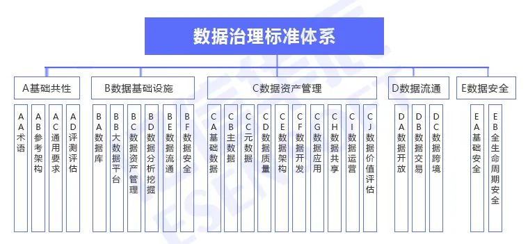 数据治理的标准体系是多个层面的,包括:国际标准、国家标准、行业标准、企业标准等。企业数据标准体系内容应涵盖:元数据标准、主数据标准、参照数据标准、数据指标标准等。数据治理的成效,很大程度上取决于数据标准的合理性和统一实施的程度。企业数据标准体系的建设应既满足当前的实际需求,又能着眼未来与国家及国际的标准接轨。