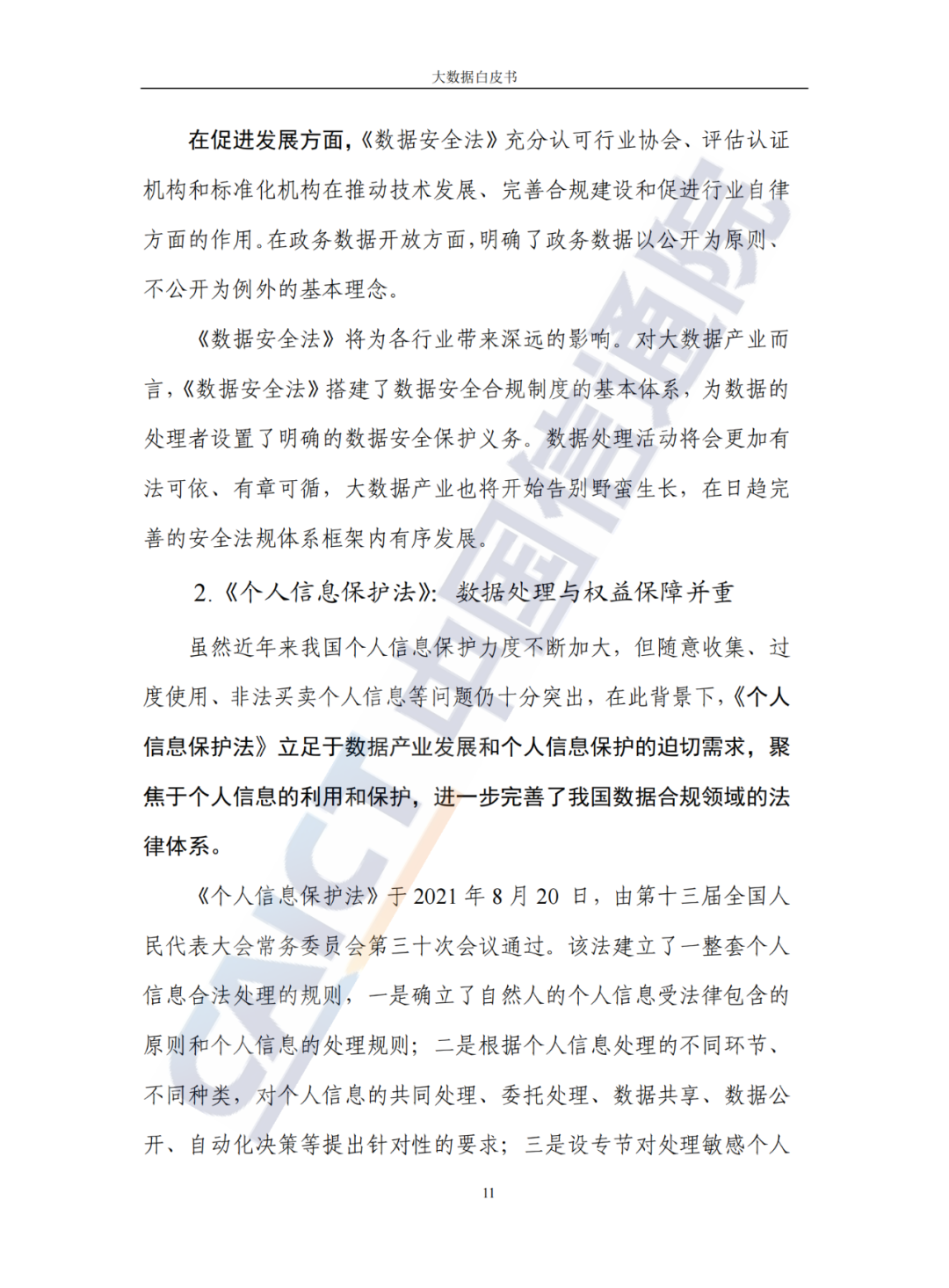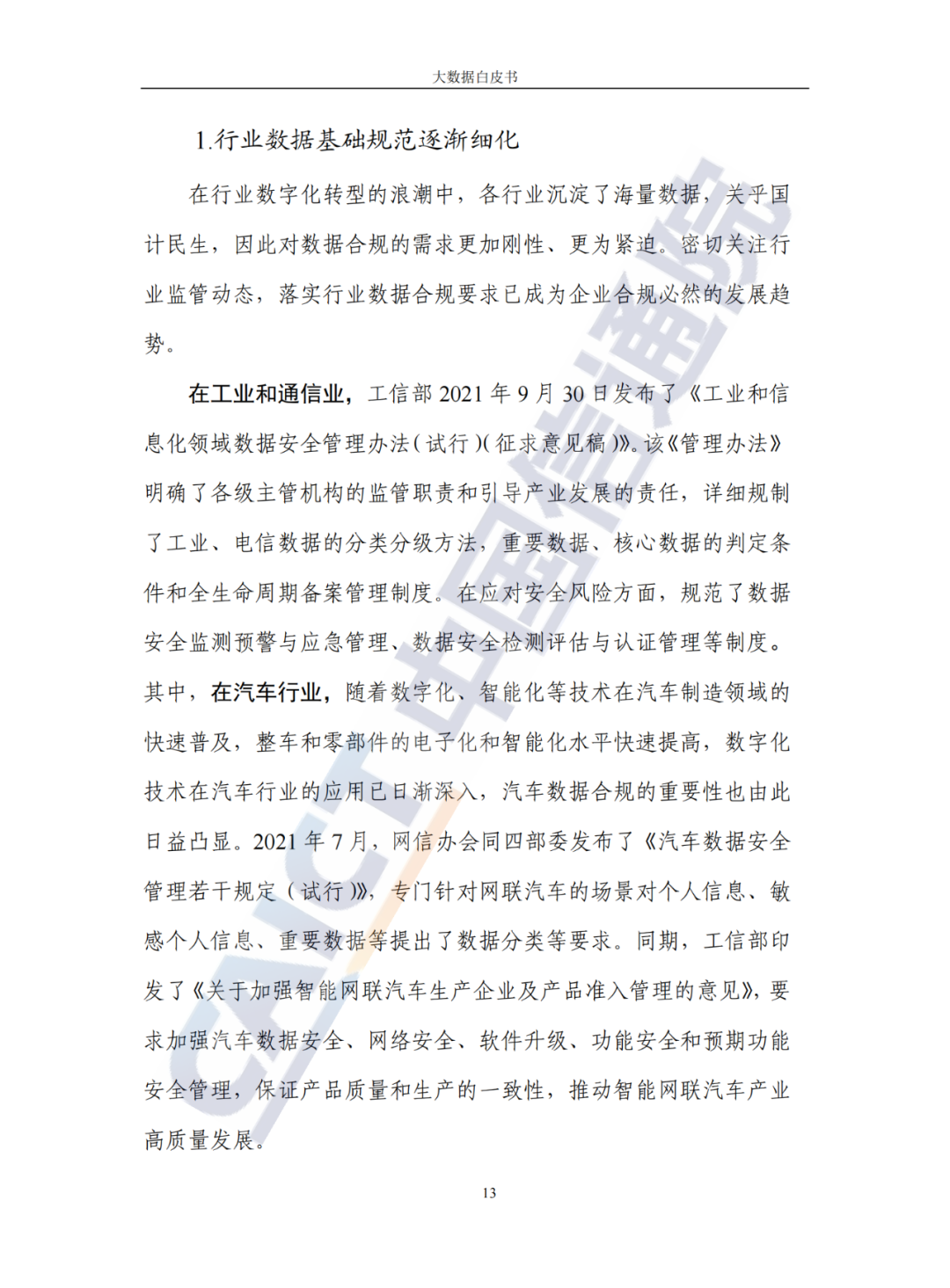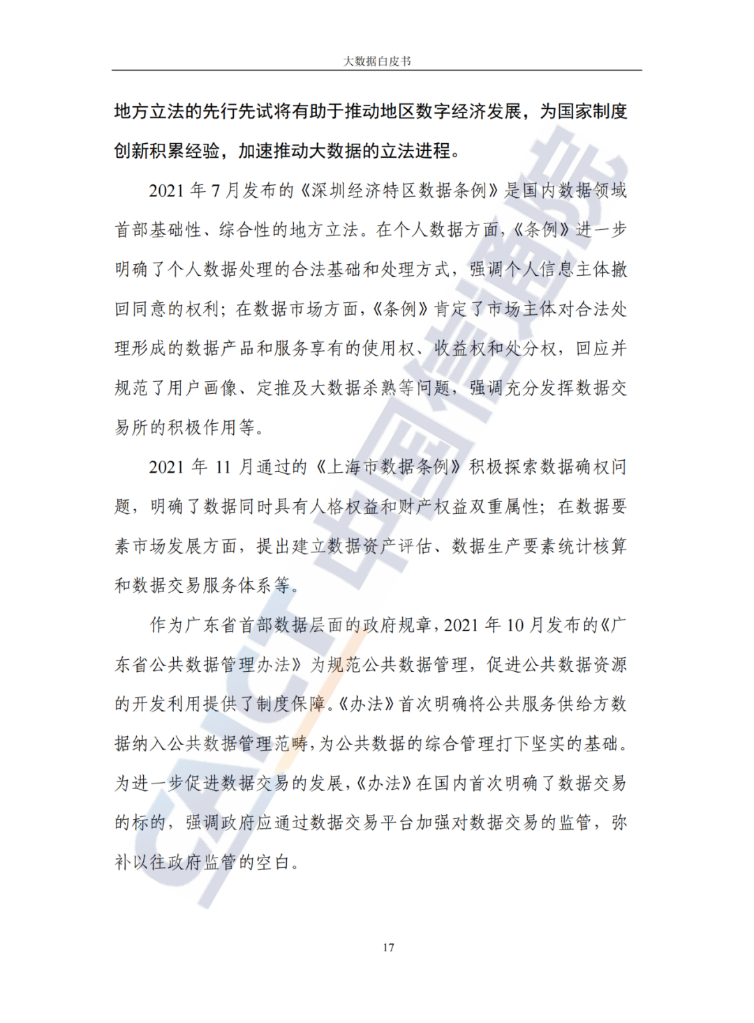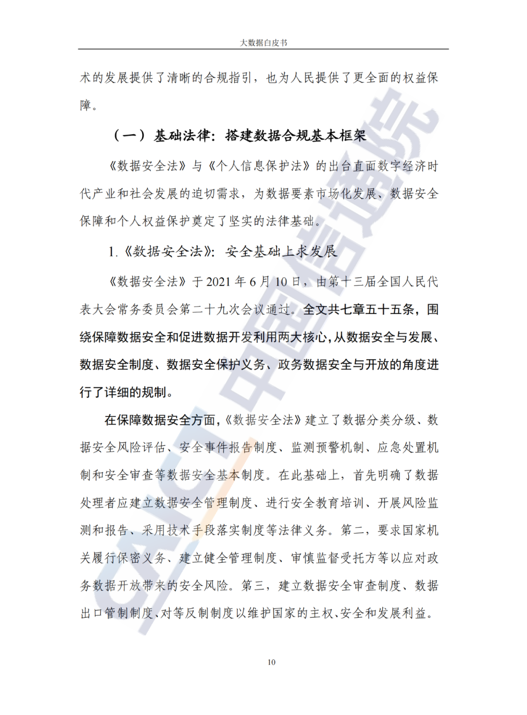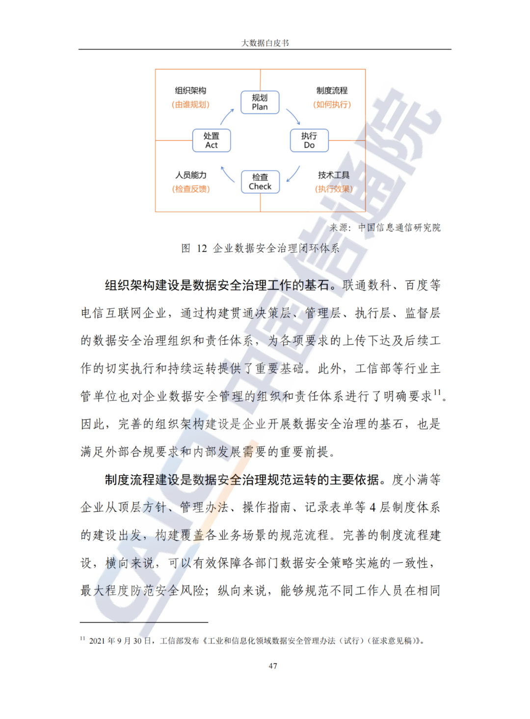 中国信息通信研究院发布的《大数据白皮书》以数据要素的价值释放作为可信逻辑,重点探索大数据政策、法律、技术、管理、流通、安全等方面的内容,并对“十四五”期间我国大数据的发展进行展望。