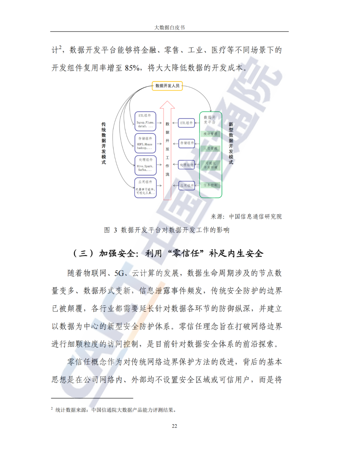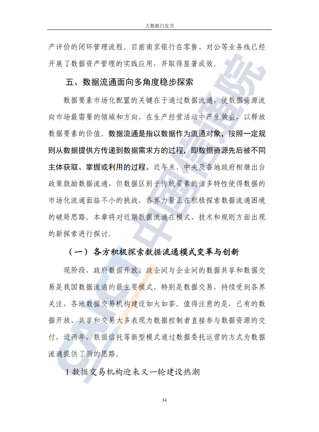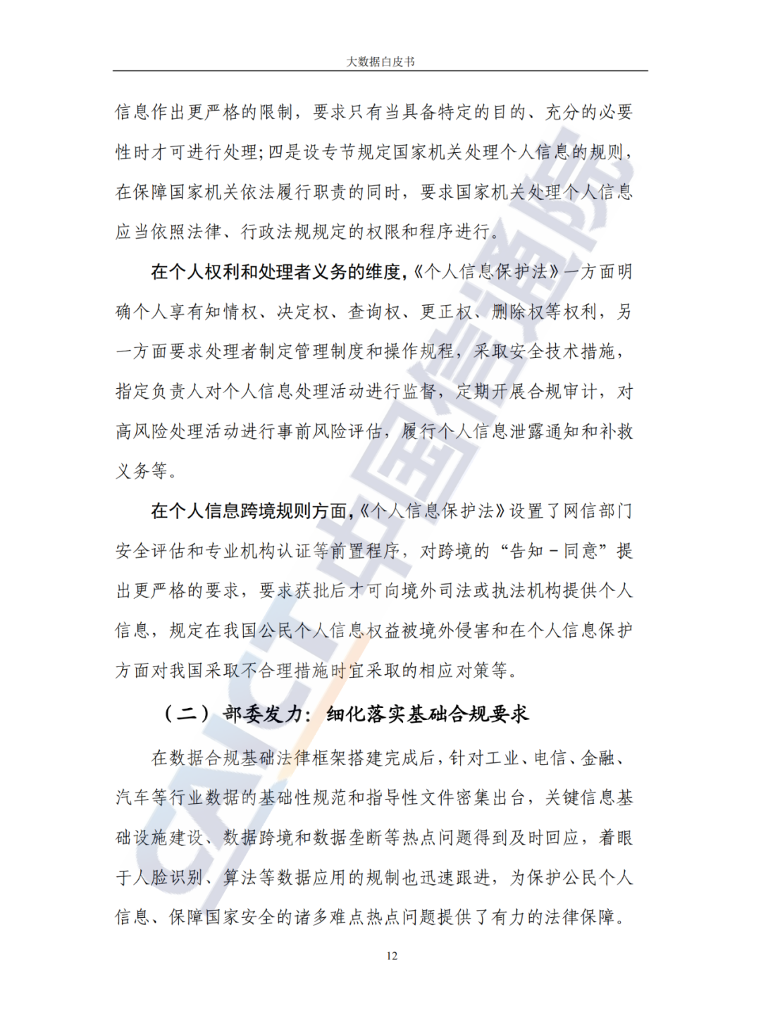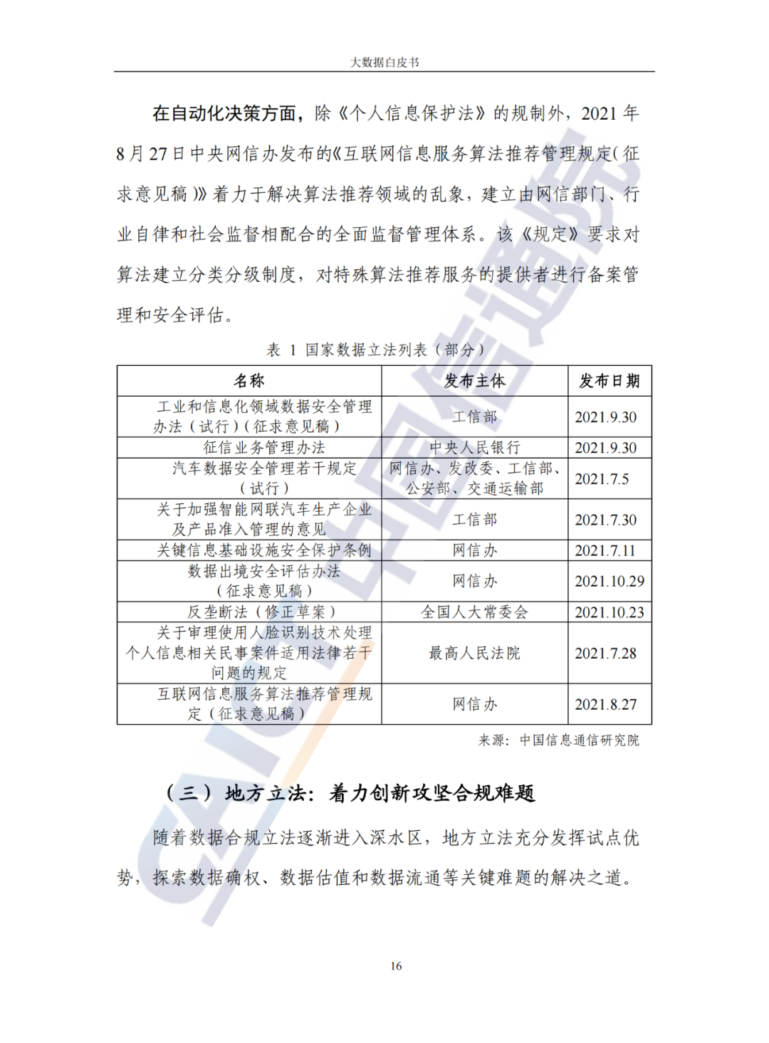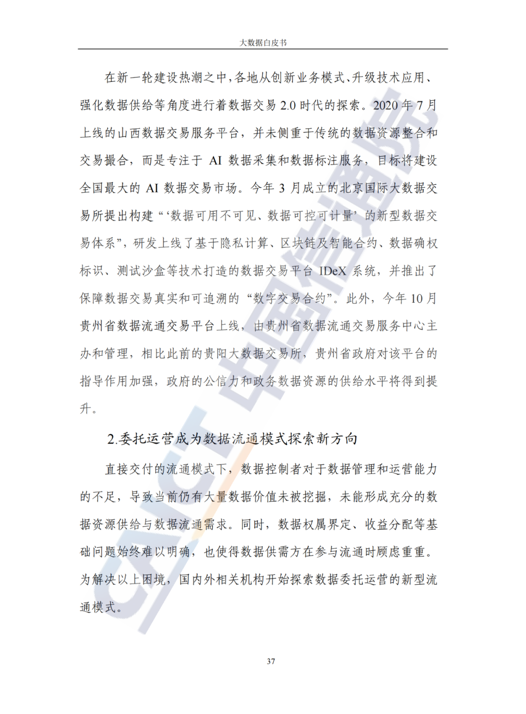 中国信息通信研究院发布的《大数据白皮书》以数据要素的价值释放作为可信逻辑,重点探索大数据政策、法律、技术、管理、流通、安全等方面的内容,并对“十四五”期间我国大数据的发展进行展望。