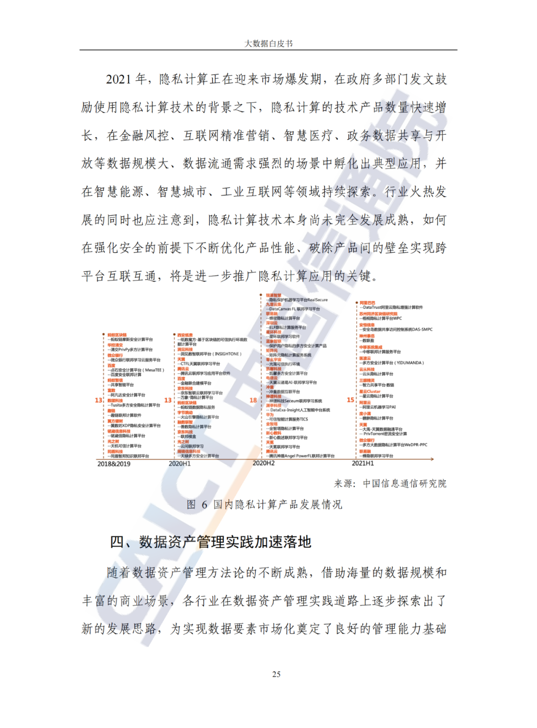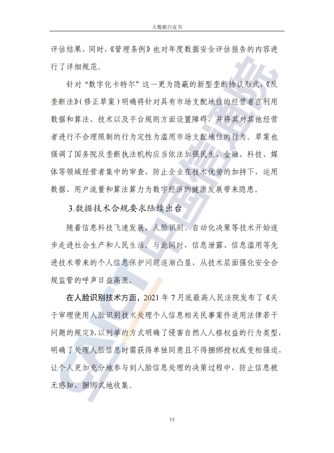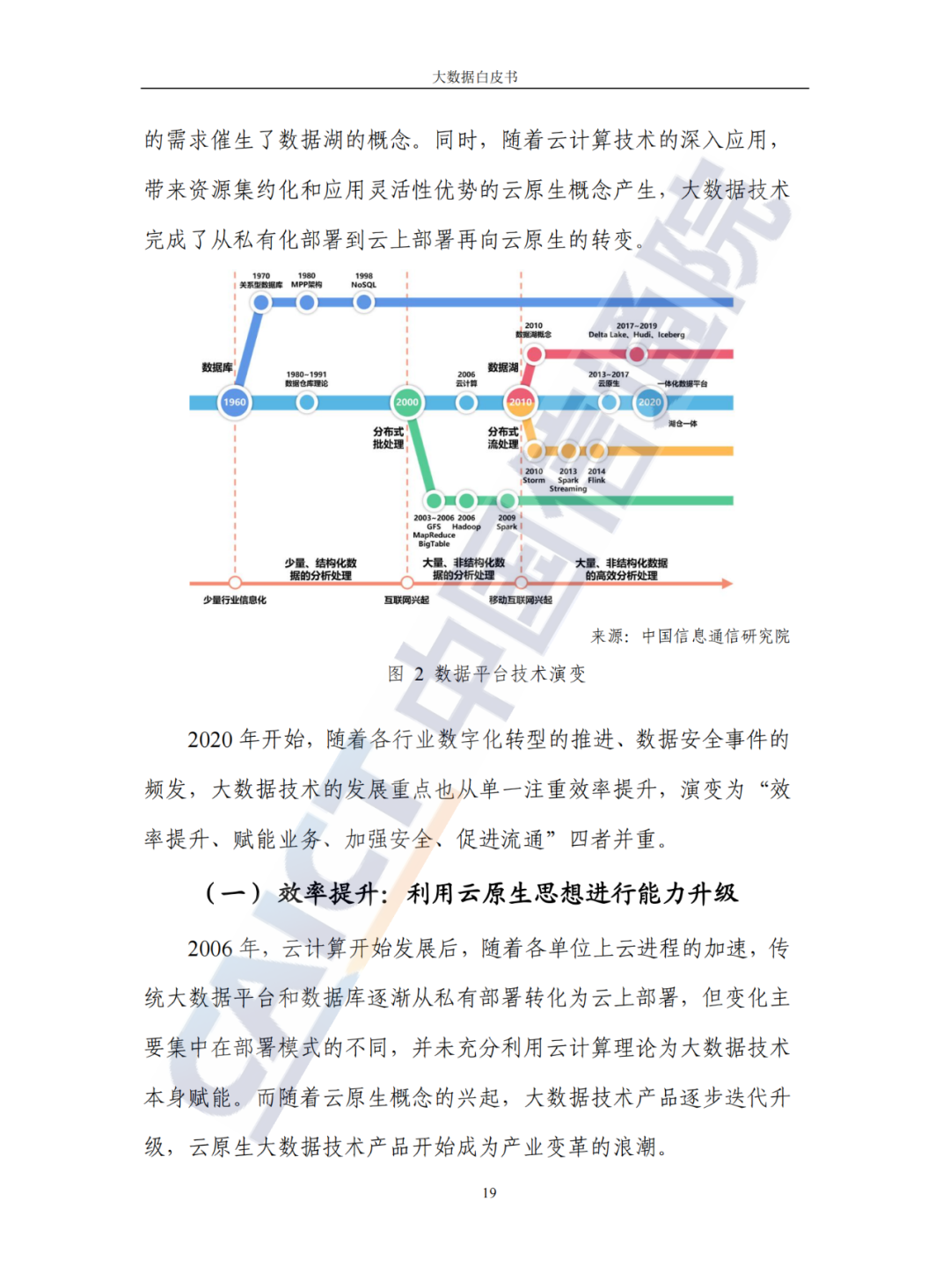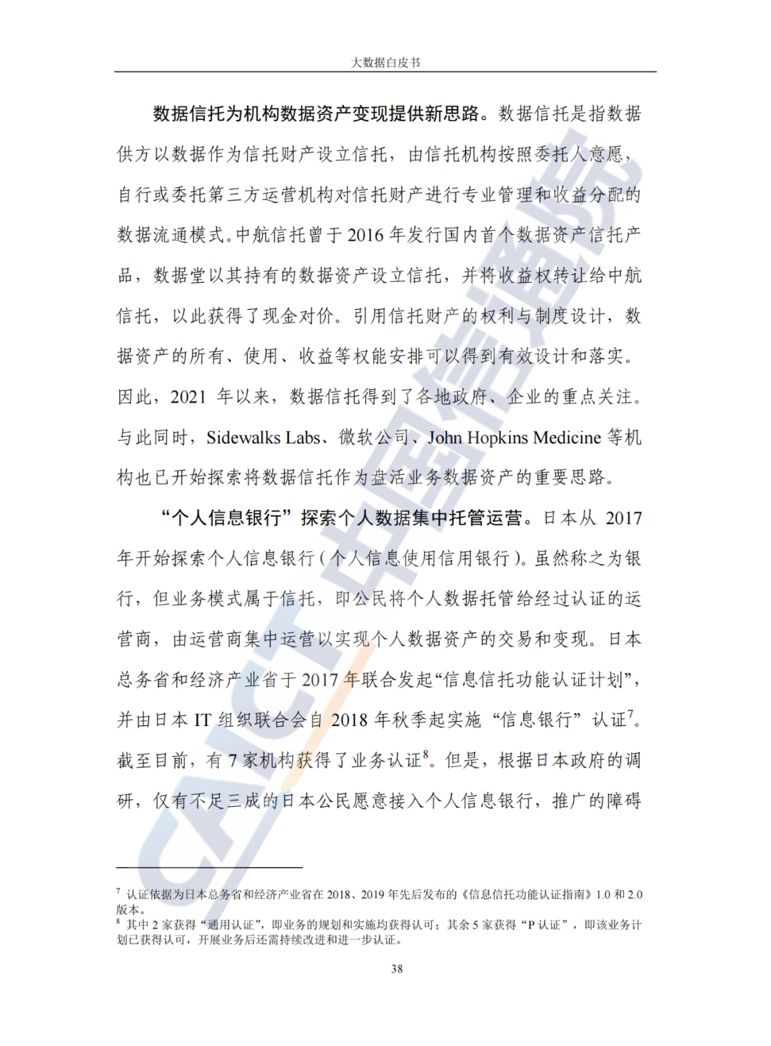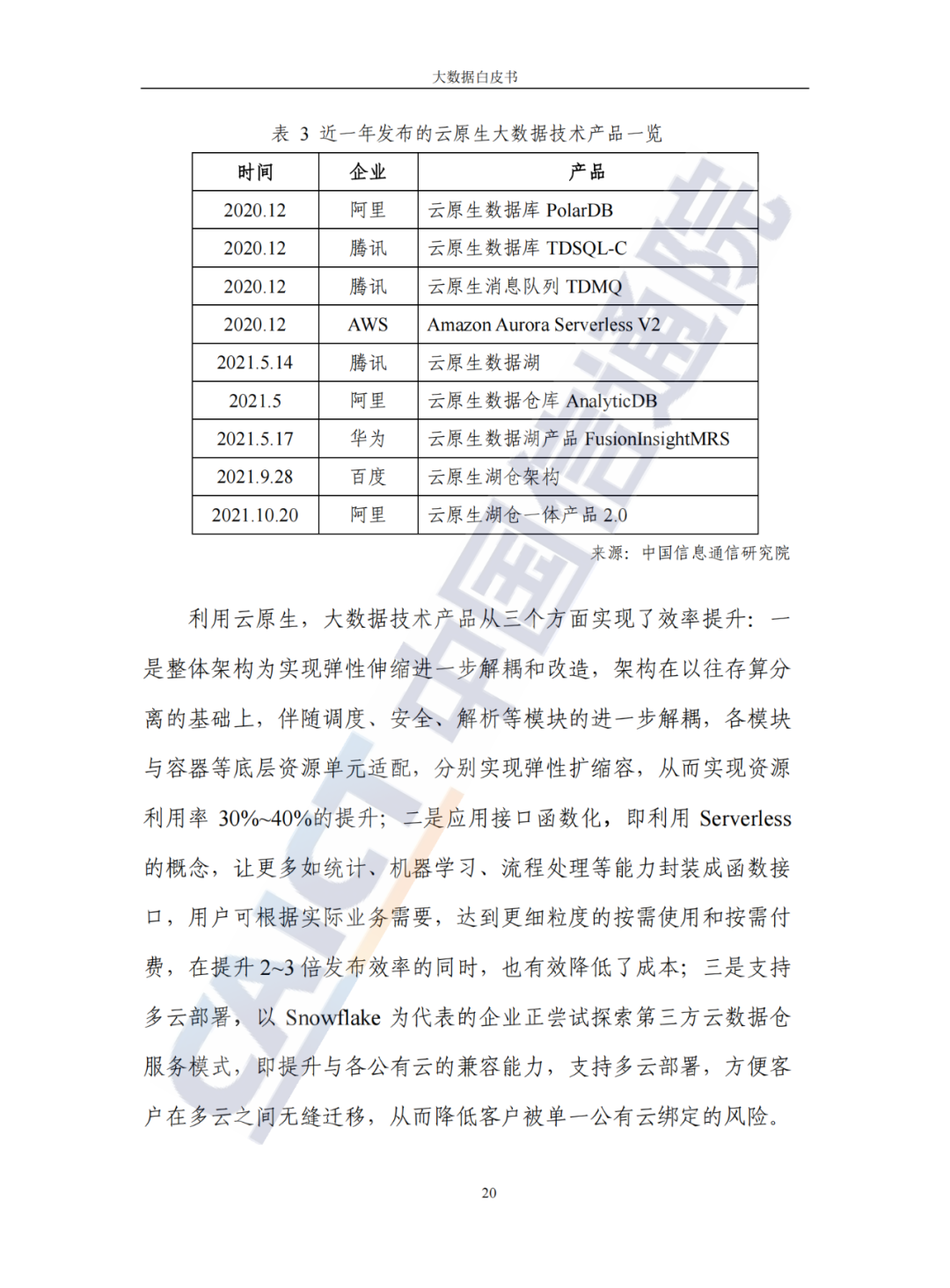 中国信息通信研究院发布的《大数据白皮书》以数据要素的价值释放作为可信逻辑,重点探索大数据政策、法律、技术、管理、流通、安全等方面的内容,并对“十四五”期间我国大数据的发展进行展望。