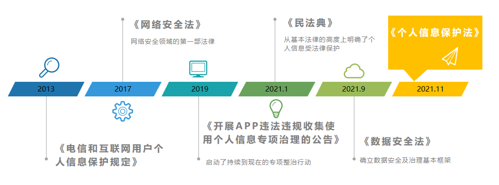 2021年11月1日,针对个人信息保护的《个人信息保护法》实施。