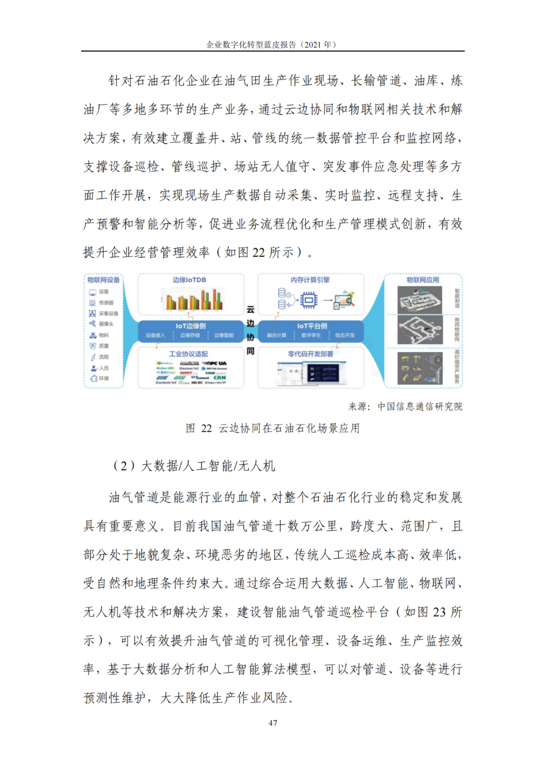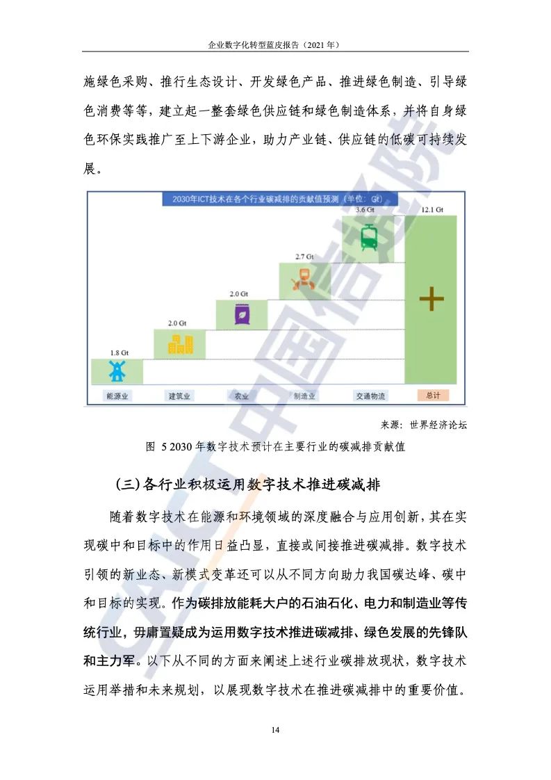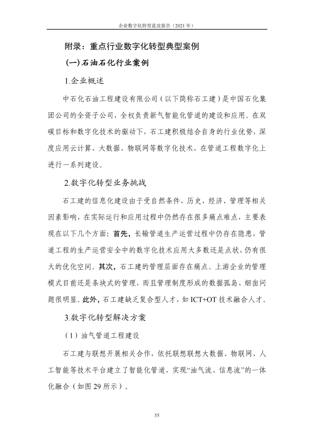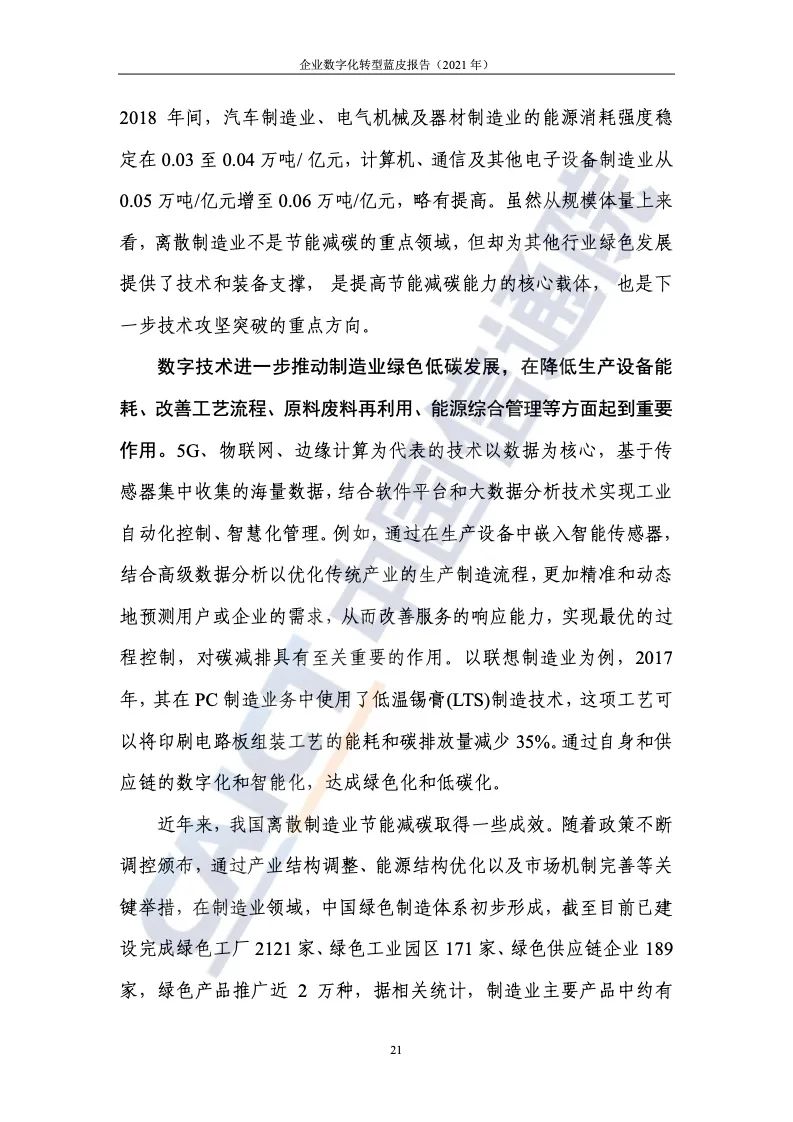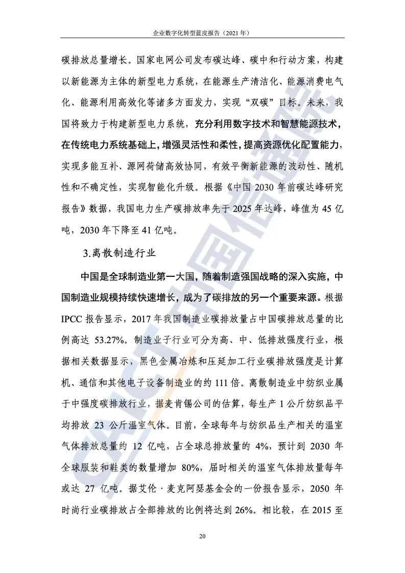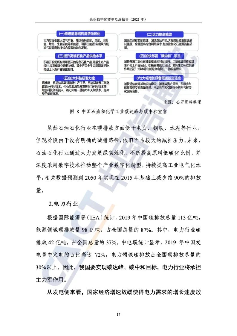 本报告聚焦石油石化、电力和制造行业三大典型高碳产业,围绕其数字化转型背景现状、碳减排工作开展情况、转型痛点难点等方面进行分析,对三大行业企业数字化转型涉及的“端-边-云-网-智”为代表的“新IT”技术、关键业务场景进行阐述,提出推进转型的路径并研提相关建议举措。本报告同时收录了部分数字化转型典型案例,希望以此为同行业企业提供转型参考示范。