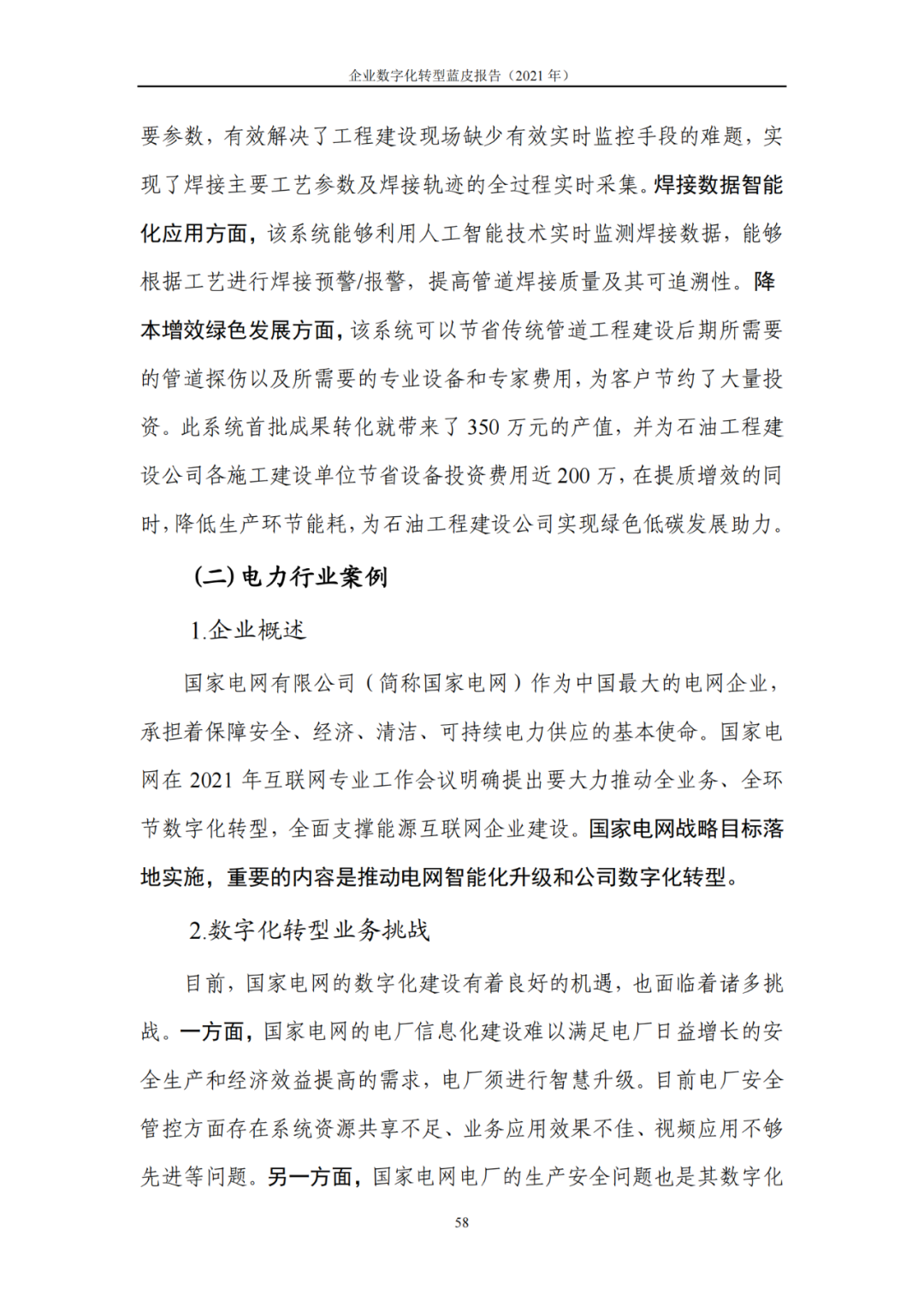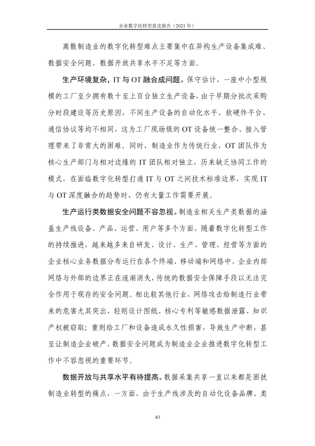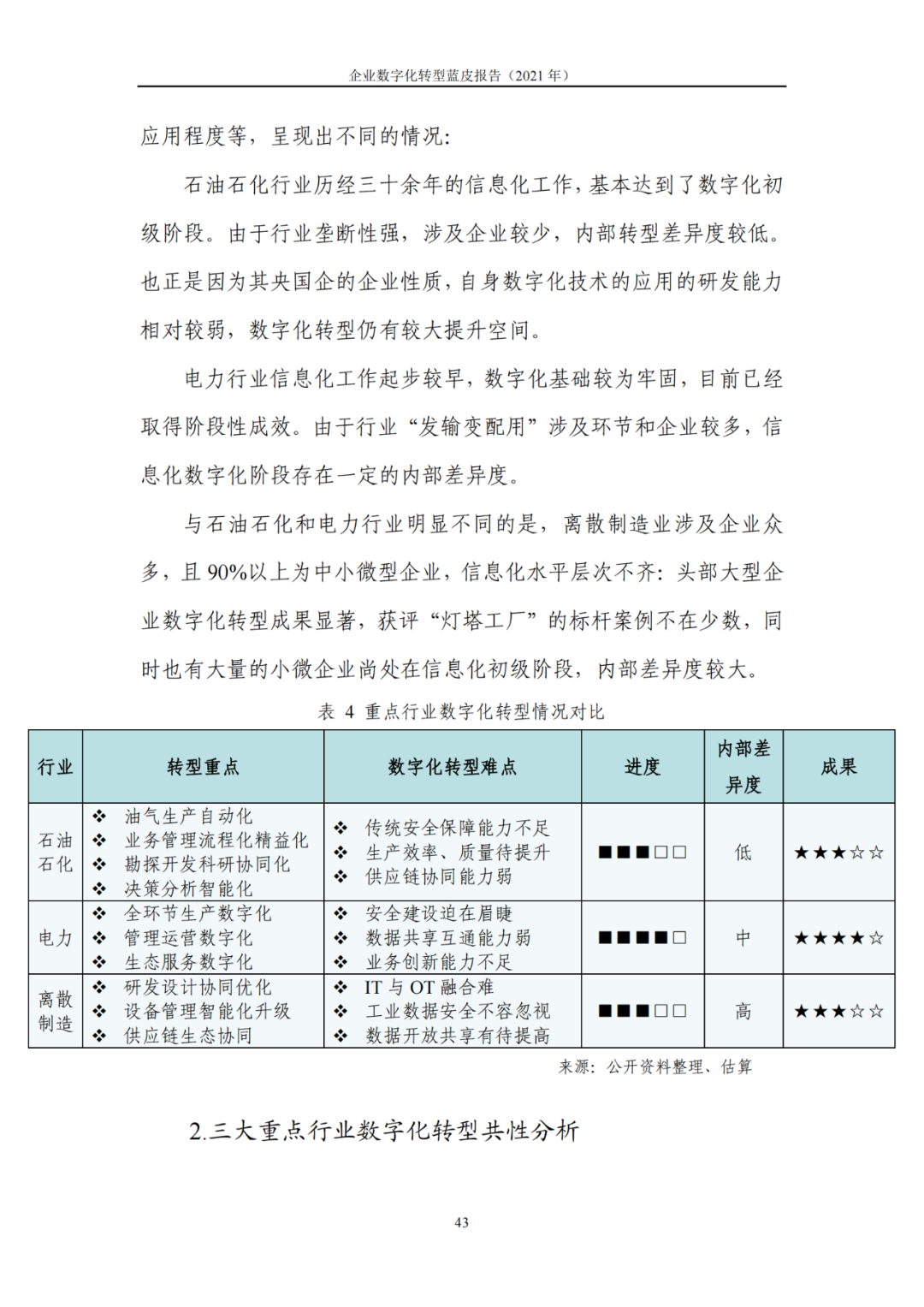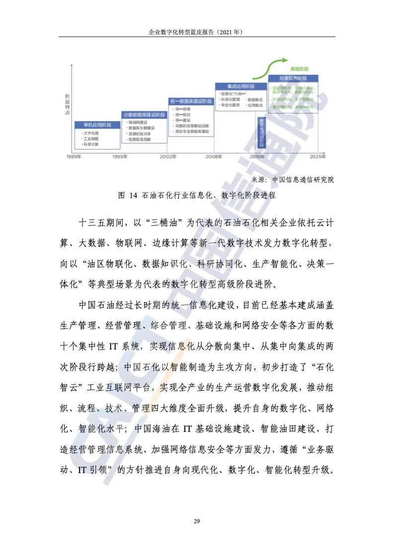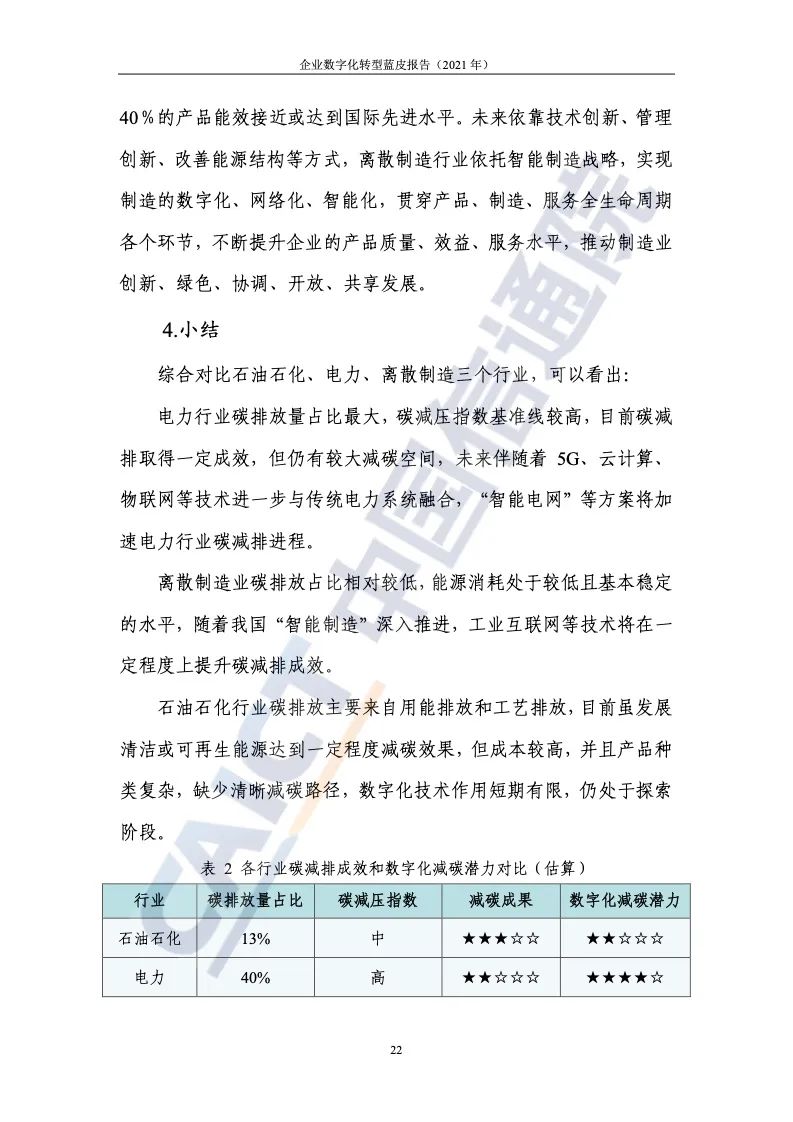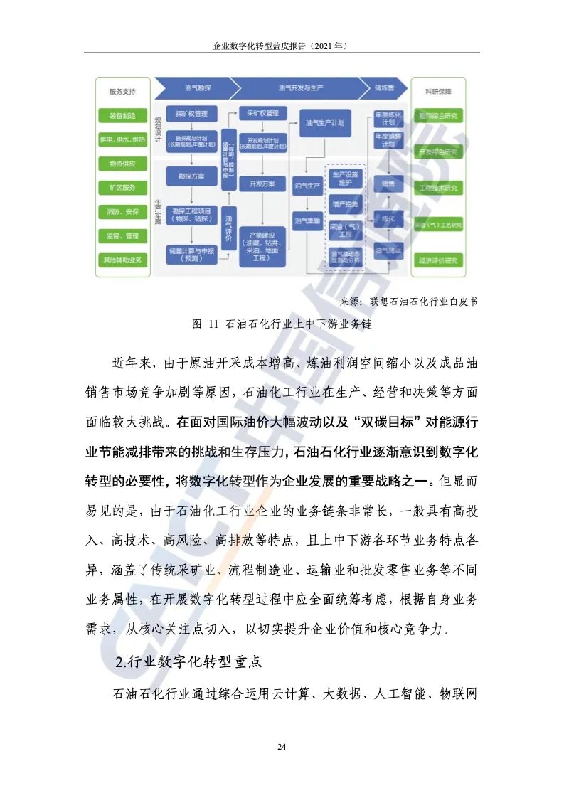 本报告聚焦石油石化、电力和制造行业三大典型高碳产业,围绕其数字化转型背景现状、碳减排工作开展情况、转型痛点难点等方面进行分析,对三大行业企业数字化转型涉及的“端-边-云-网-智”为代表的“新IT”技术、关键业务场景进行阐述,提出推进转型的路径并研提相关建议举措。本报告同时收录了部分数字化转型典型案例,希望以此为同行业企业提供转型参考示范。