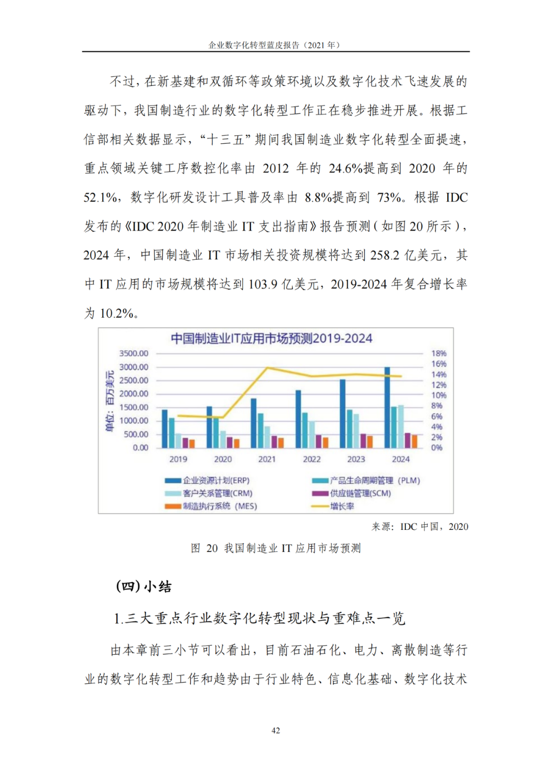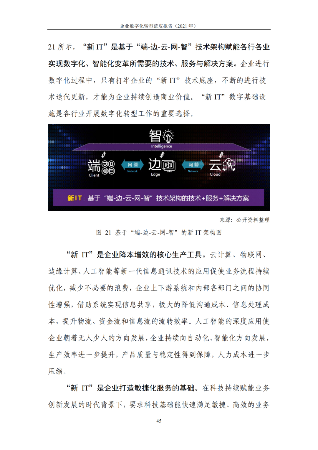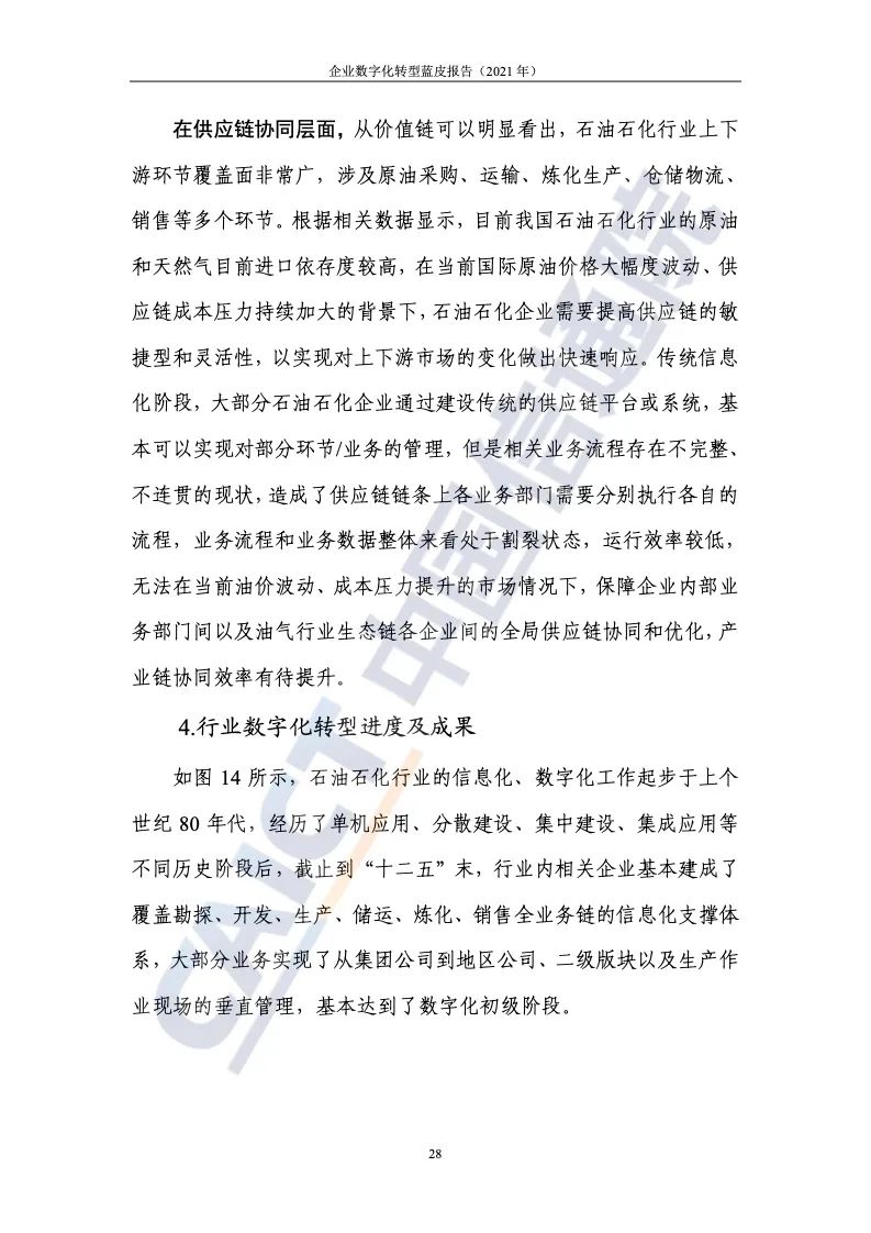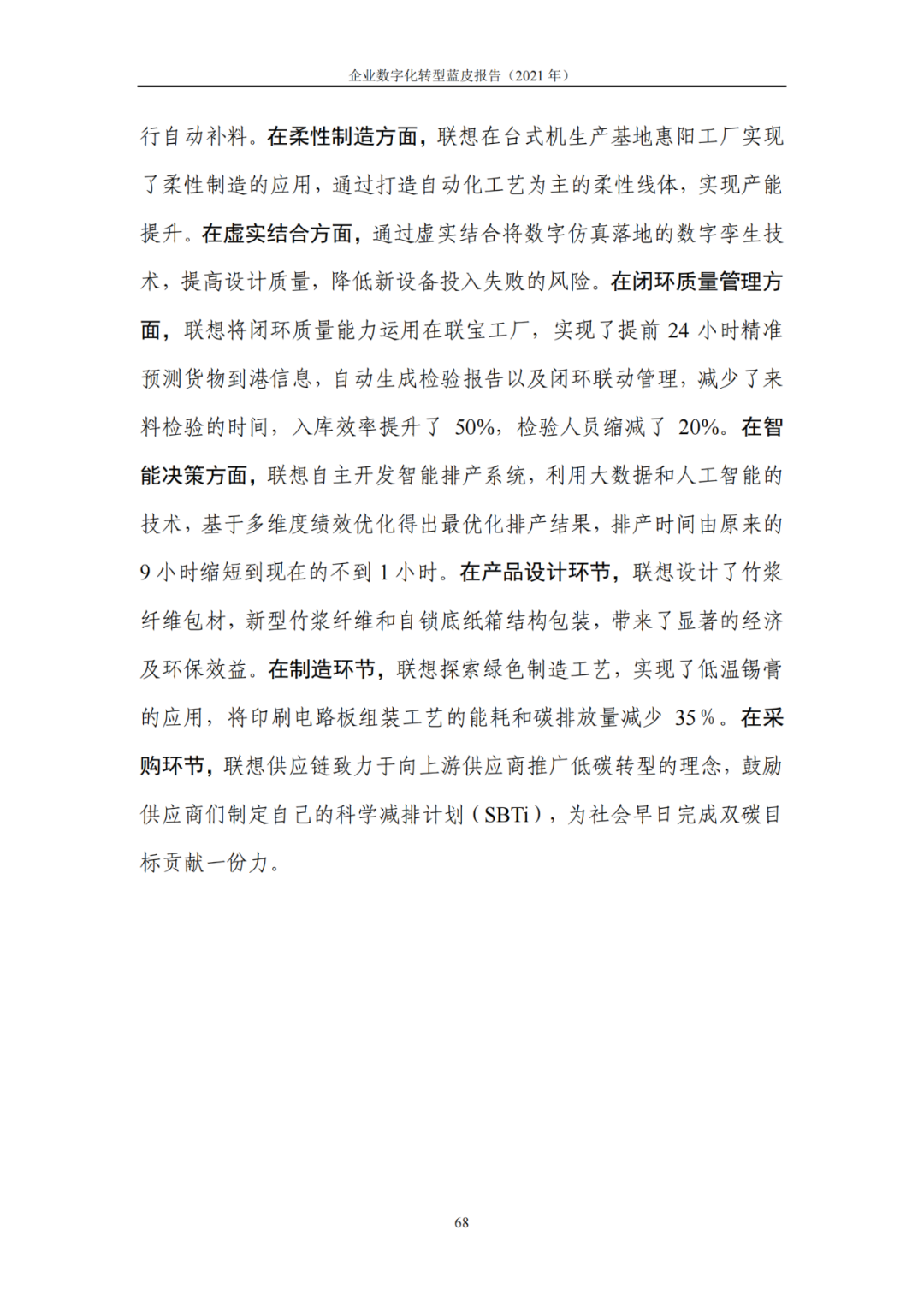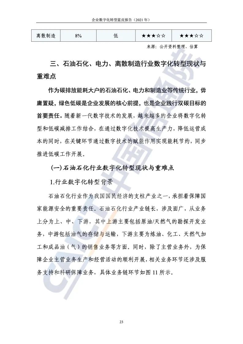 本报告聚焦石油石化、电力和制造行业三大典型高碳产业,围绕其数字化转型背景现状、碳减排工作开展情况、转型痛点难点等方面进行分析,对三大行业企业数字化转型涉及的“端-边-云-网-智”为代表的“新IT”技术、关键业务场景进行阐述,提出推进转型的路径并研提相关建议举措。本报告同时收录了部分数字化转型典型案例,希望以此为同行业企业提供转型参考示范。