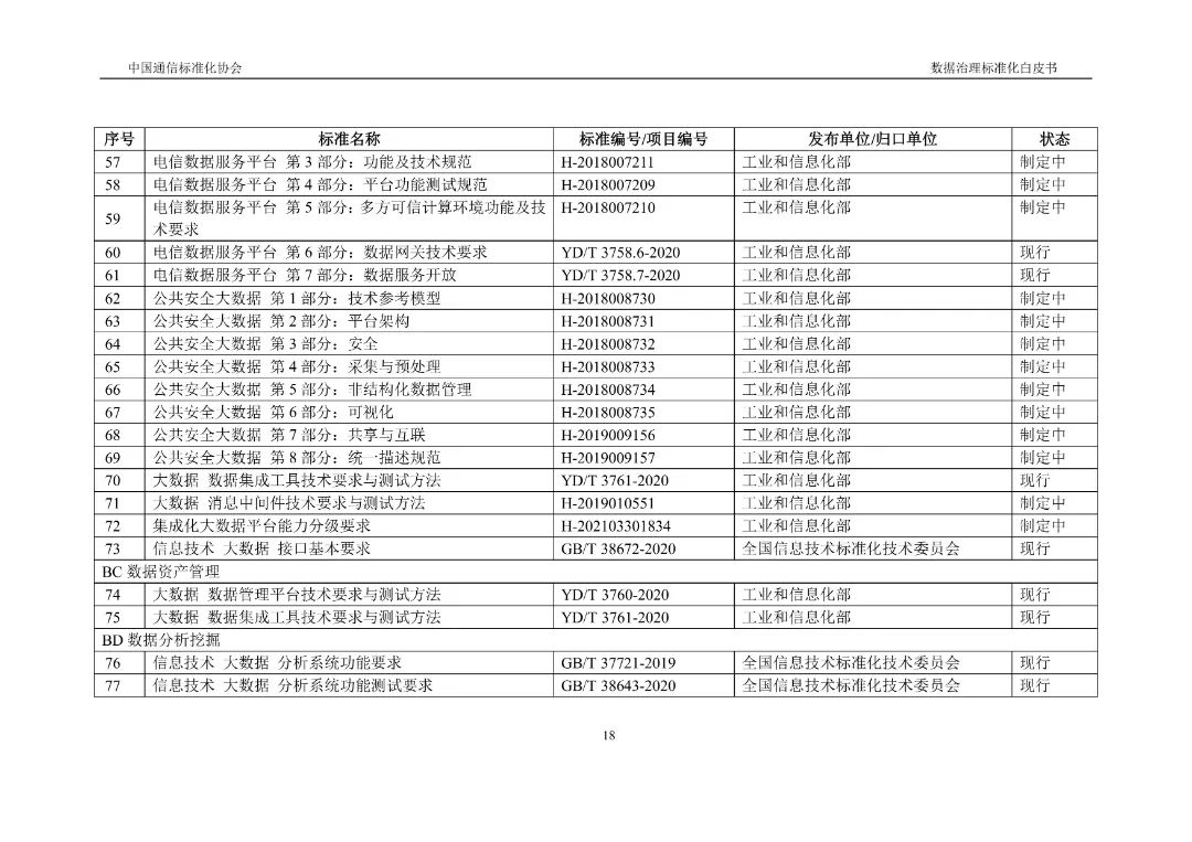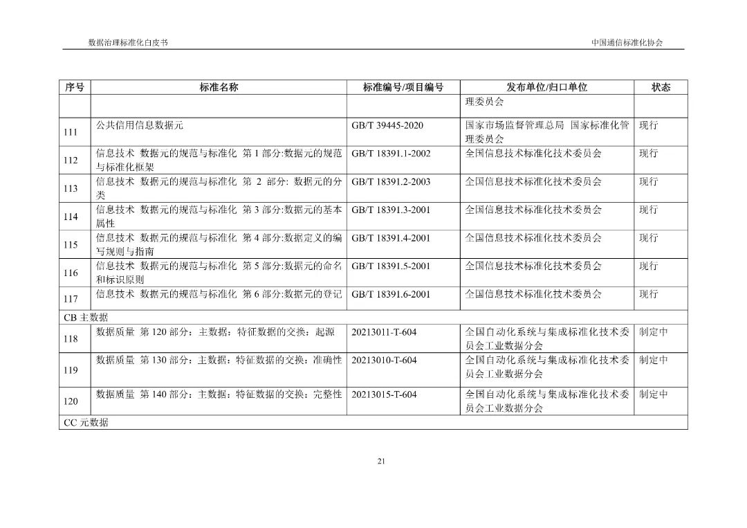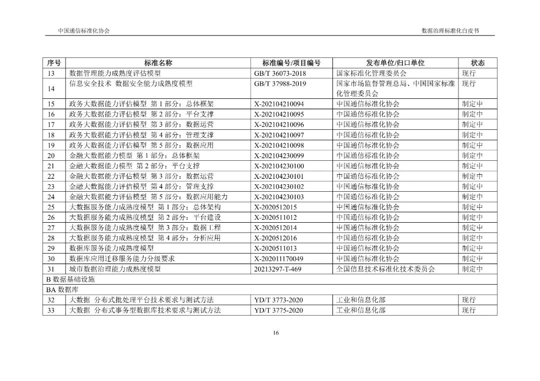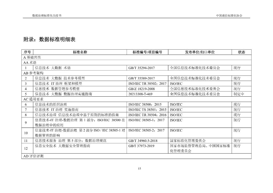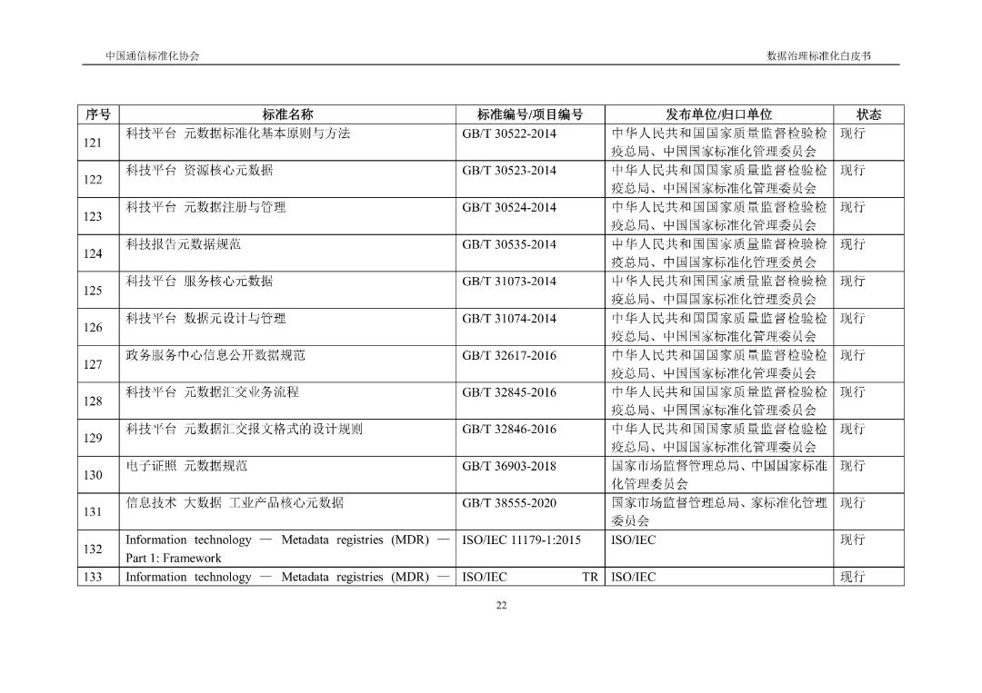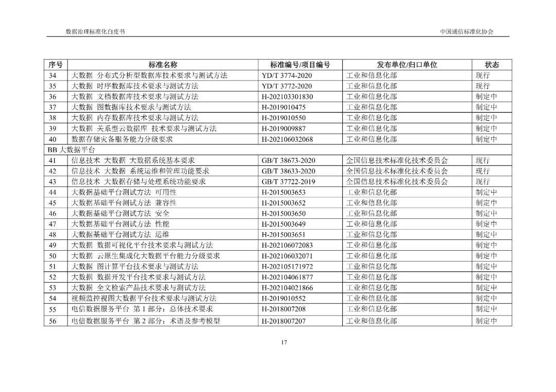 近期,《数据治理标准化白皮书》正式发布,该白皮书积极将标准化理念引入数据治理领域,重点探讨数据治理标准化的概念内涵、总体进展、典型标准和需求挑战,搭建了数据治理标准体系框架及运行机制,并提出工作建议。