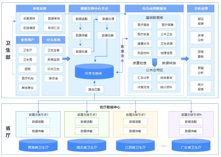 该项目是由国家卫生部统一筹划部级数据应用平台,该平台以亿信数据交换管理平台为基础,共享和整合公共卫生服务、卫生资源、医疗服务、人口信息、分级诊疗、药政统计、疾病救助等业务数据,满足了全国各省市卫生统计的个性化数据采集,确保统计数据管理和应用的可持续性。