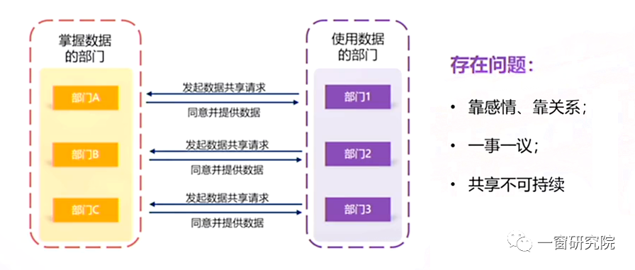 - 因素3:共享出的数据使用权限和边界是什么?怎么去使用?是不是被他用?不是说一股脑的让部门把数据都拿出来,共大家随便使用。