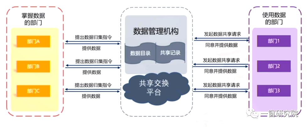 所以我们要搞共享,要实现政府部门之间能够相互的使用数据,其方式一般的分这两类:“一对一”模式也是传统的模式。比如说政府部门在履职的过程中,需要另外一个部门的数据,但没有统一集中的平台,也没有基于这种目录交换的逻辑共享的体系,那怎么办呢?这时候可以通过两个部门的领导去谈,通过一事一议的方式,或者靠上级领导组织办公会协调的方式,来推进数据的共享使用。还有就是靠感情、靠关系的方式,比如两个部门的领导是党校同学,有时候要用数据就可以直接拿到了。但这种靠感情看关系的实现机制很不稳定,如果出现领导变更了,可能就拿不到数据了,这就会影响数据共享的可持续性。什么是中心化的模式呢?就是数据共享无论通过物理集中还是逻辑集中,都要搭建一个共享交换平台,任何部门想使用其他部门的数据,都通过共享交换平台来获得数据。平台上的数据有可能是物理集中,也可能是通过共享交换平台去调取别的部门的数据。这种“中心化”的模式就需要成立一个专门的数据管理机构,要搭建一个数据共享交换的平台,来实现政府数据的使用。但同时我们也要注意到,这种模式也存在一定的问题:1. 共享需求不明确。因为是先收集数据再进行共享,收集到的数据往往和实际需求存在显著差异。比如疫情防控早期阶段,对相关数据需求很大,这时才发现原来各地的平台都不能满足疫情防控的需要,于是又重新进行数据整合,各个地方就出现了健康码等类似的工具和平台,才使得疫情防控工作得到一个根本的改观。2. 数据资源质量差异大。前面也提到了,因为是部门导向的信息化,每个部门建的系统和平台,其外包公司不一样、基础开发软件不一样、数据定义不一样、数据标准也不一样,所以把这些数据共享会发现差异很大。再加上拥有这些数据的部门,信息化能力不一,有的可以派专人维护更新,有的根本没人负责,还有些地方的数据运维完全交给第三方公司来做,现如今市场竞争很厉害,这个公司可能早就不存在了。所以通过“中心化”模式就会遇到这些问题。3. 部门配合意愿不强。为什么会意愿不强?因为这些数据一旦拿出来之后,原部门就管不了了,万一产生争议和风险,板子又要打过来,再加上这些数据还会存在一些问题,真的汇集起来,有些原部门就会担心暴露工作中的一些问题。4. 数据有效性无法保证。数据传输过程中多了一次中转,往往不好确定数据的实效性和准确性。既然出现这么多问题,这些问题该如何破解呢?让各个部门把数据能有效的共享交换使用,以下4点是必须做到的:1. 明确权属问题。需要保证共享不改变数据的归属权,解决数据提供部门的后顾之忧。