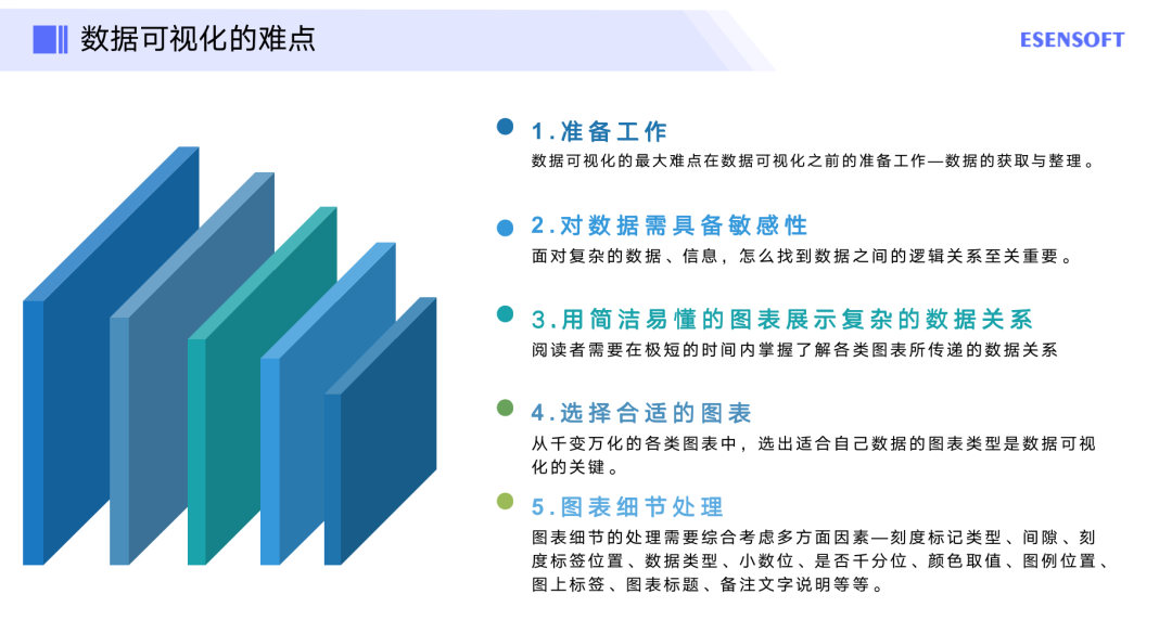 因为阅读者需要在极短的时间内掌握了解各类图表所传递的数据关系,数据可视化需要尽可能简洁,便于让不同的阅读者快速抓住其重点,因此数据可视化就需要用有限的文字、简洁的图表展现大量的数据之间的各种关系与其客观规律。