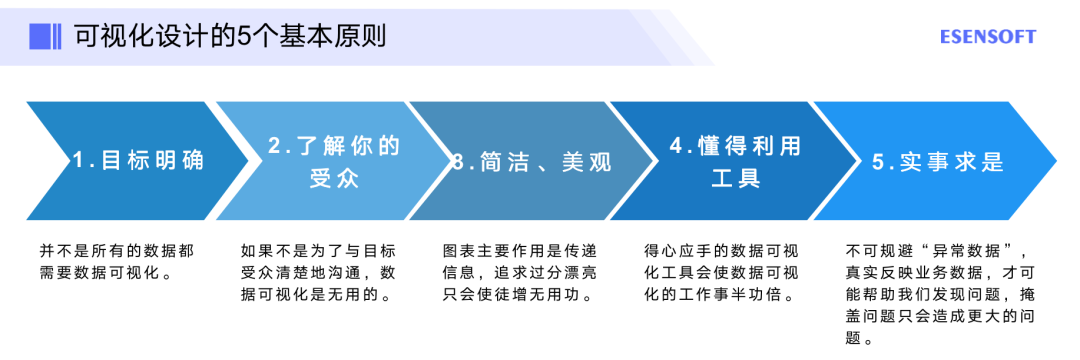 我们在进行可视化设计的过程中需要遵循的5个基本原则: