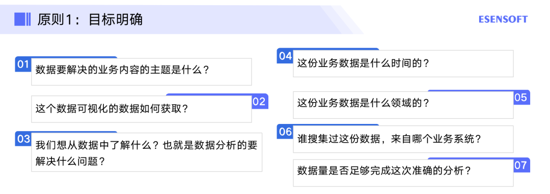 如果我们对以上7个问题有明确的答案,那么就明确了这次的数据可视化到底要解决什么问题。