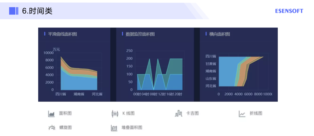 可视化的方法是展示数据随时间的变化趋势。是属于趋势类的一个细分,在数据分析里使用的不交多的,比如面积图、折线图等等。