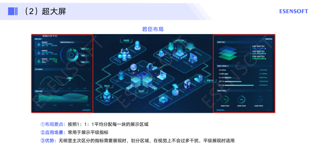 对于超大屏来说,我们有三种,一种是均等布局,一种是故事布局,还有一种是君臣布局:
