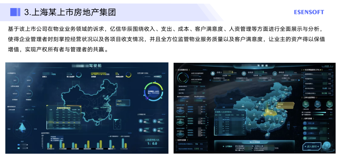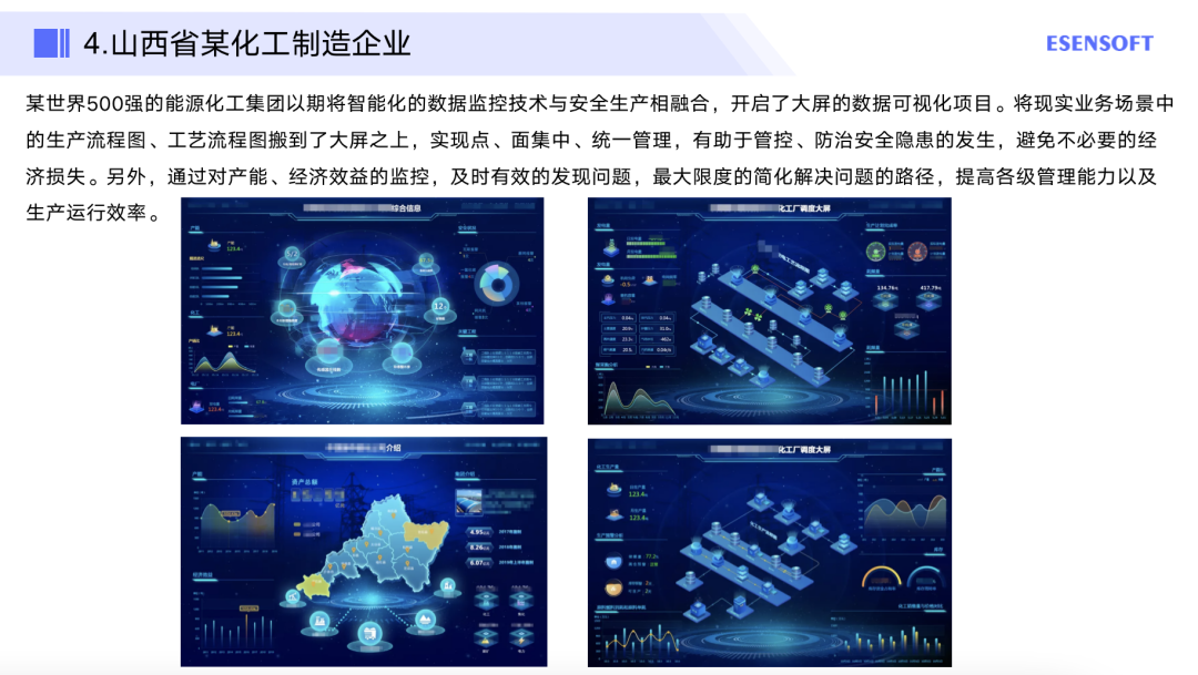 比如,亿信华辰的数据可视化平台——酷屏。酷屏是亿信华辰自主研发的新一代数据可视化产品,可灵活、快捷地制作各类交互式常规屏和大屏可视化,内置百余种炫酷组件和3D特效,让数据得到更形象、更直观的可视化呈现,我们PPT上的所有配图都是运用酷屏帮助客户做出来的。