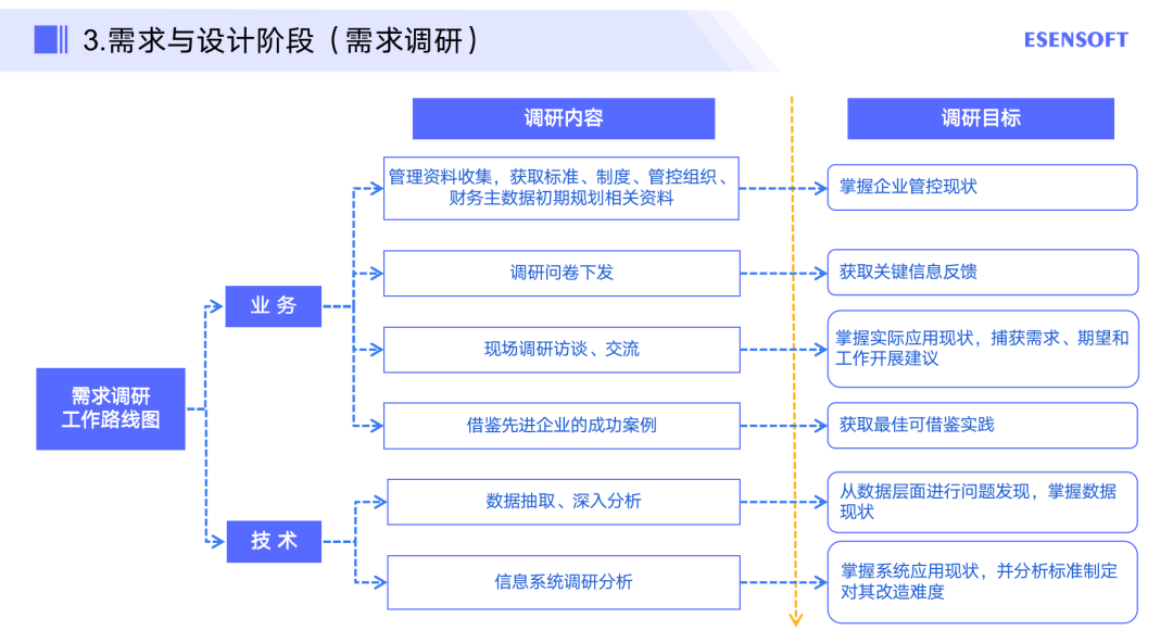 这一阶段也称为需求调研阶段,主要从两方面去看,一个是业务方面,一个是技术方面。