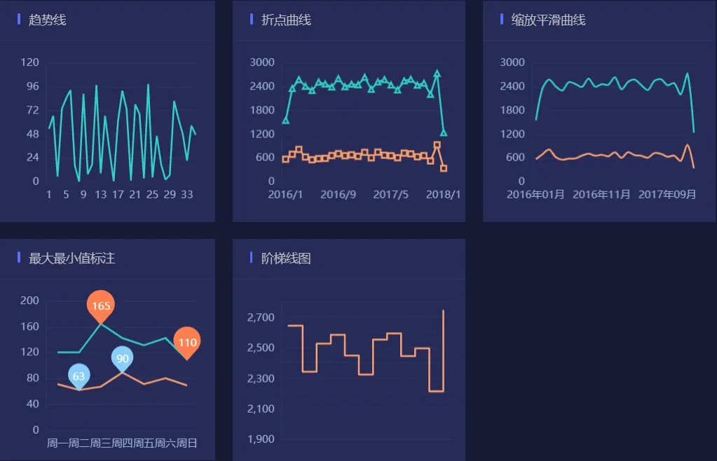 评价:精准、快速,但是不适合多数据集中展示,不容易区分