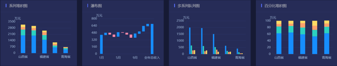 除了上述常用经典图表,亿信ABI还可以制作出炫酷吊炸天的数据图表,后续小亿会教你实用技巧,来提升表哥表姐们的数据报表的逼格。