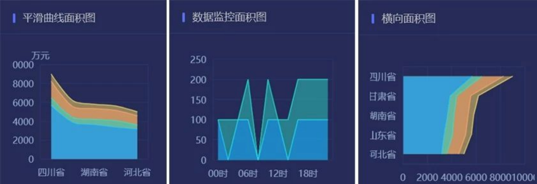 (1)适用场景:用面积展示数值大小,展示数量随时间变化的趋势。