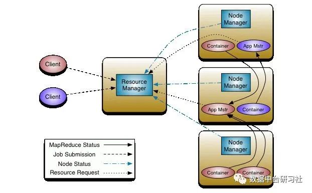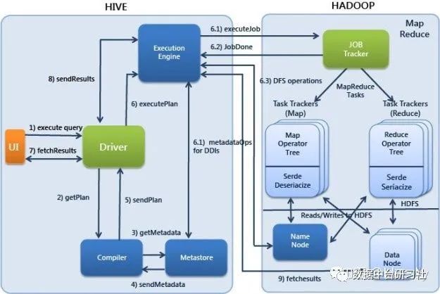 第一个选择是Hive,它是将SQL查询转换为MR Tez / Spark作业并在集群上执行的引擎。所有作业均基于相同的MapReduce概念构建,并为您提供了良好的群集利用率选项以及与其他Hadoop堆栈的良好集成。但是缺点也很大-执行查询的延迟大,尤其是对于表联接的性能较低,没有查询优化器(至少目前是这样),因此即使是最糟糕的选择,引擎也可以执行您要求的操作。这张图片涵盖了过时的MR1设计,但在我们的背景下并不重要: