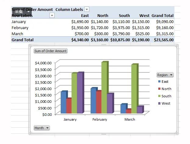 excel pivot chart 则是承接 cube 来的数据,完成可视化操作。